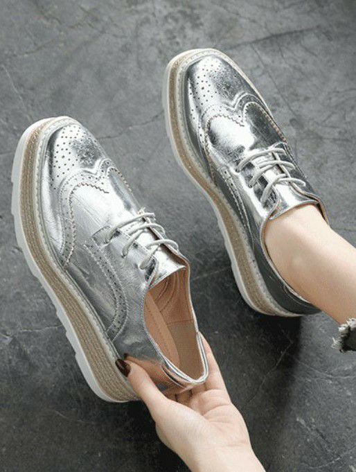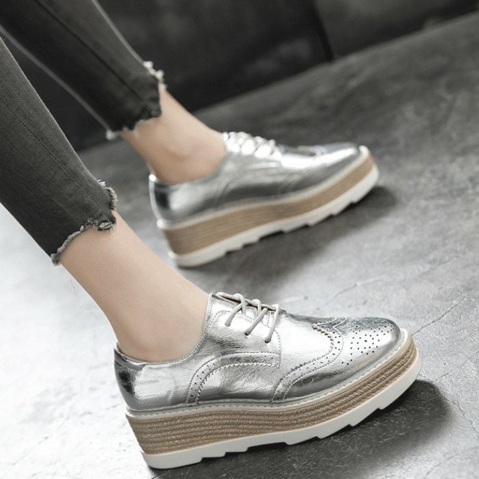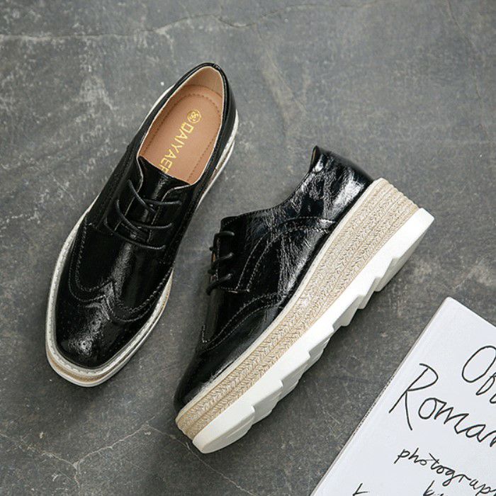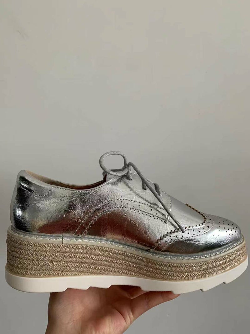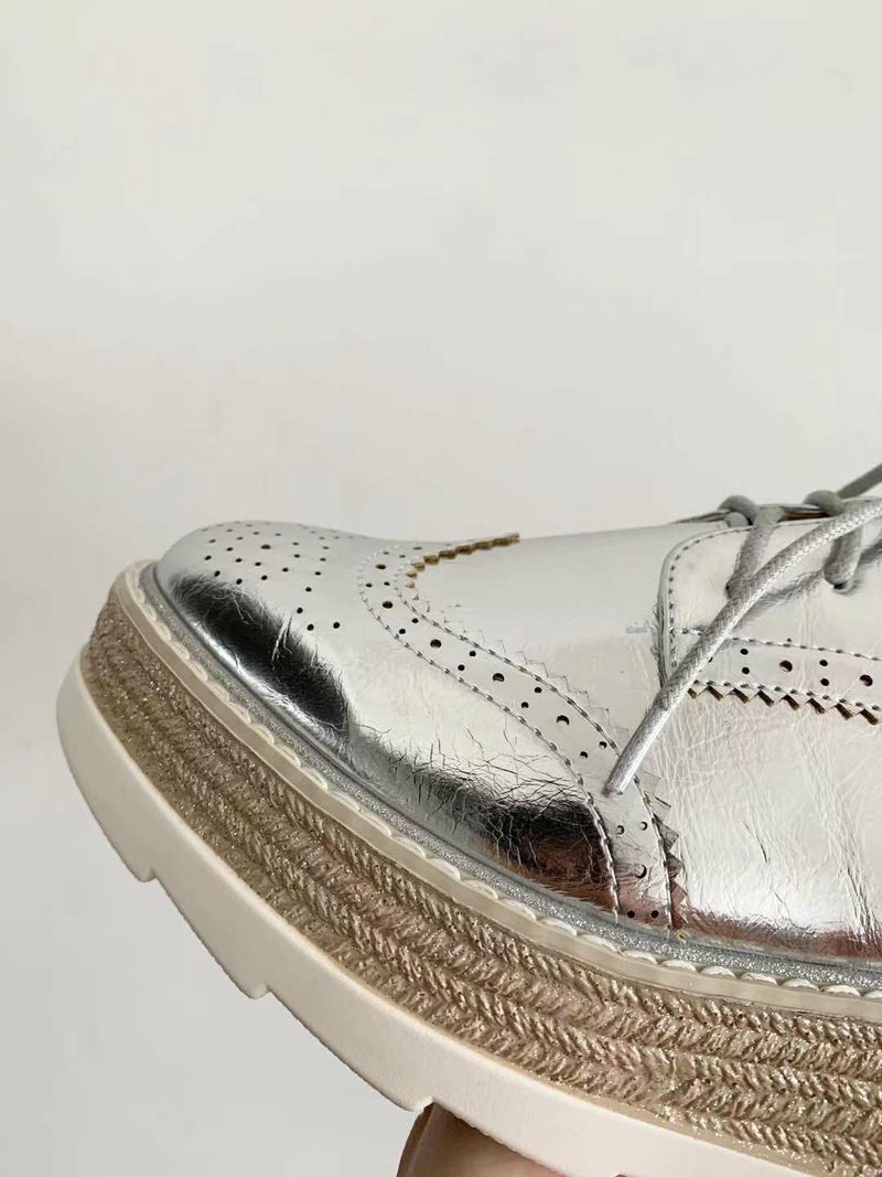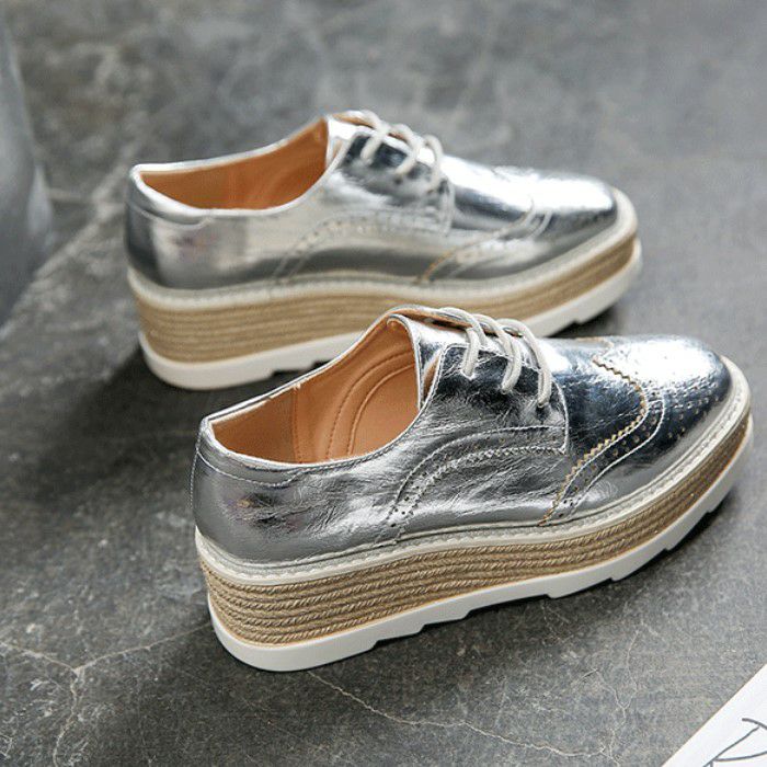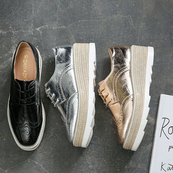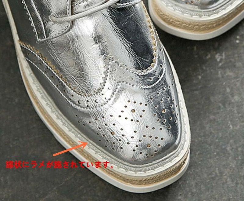 予約 3color メタリック 編み上げ ボリューム シューズ