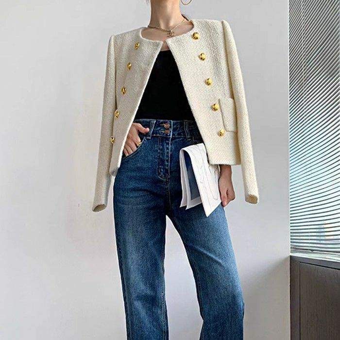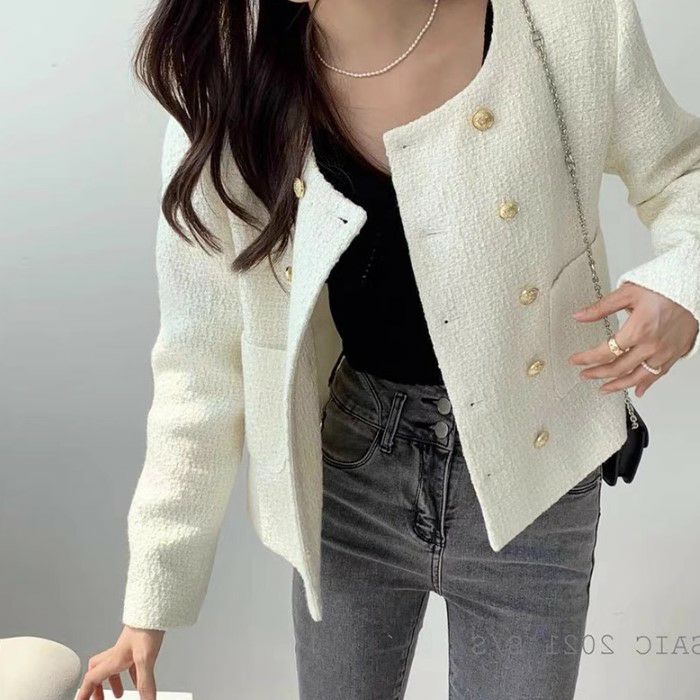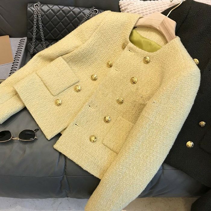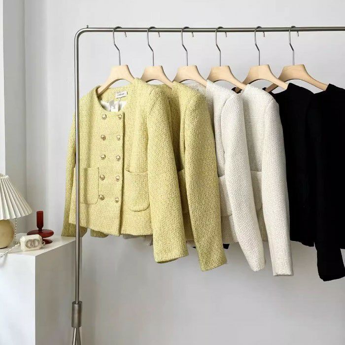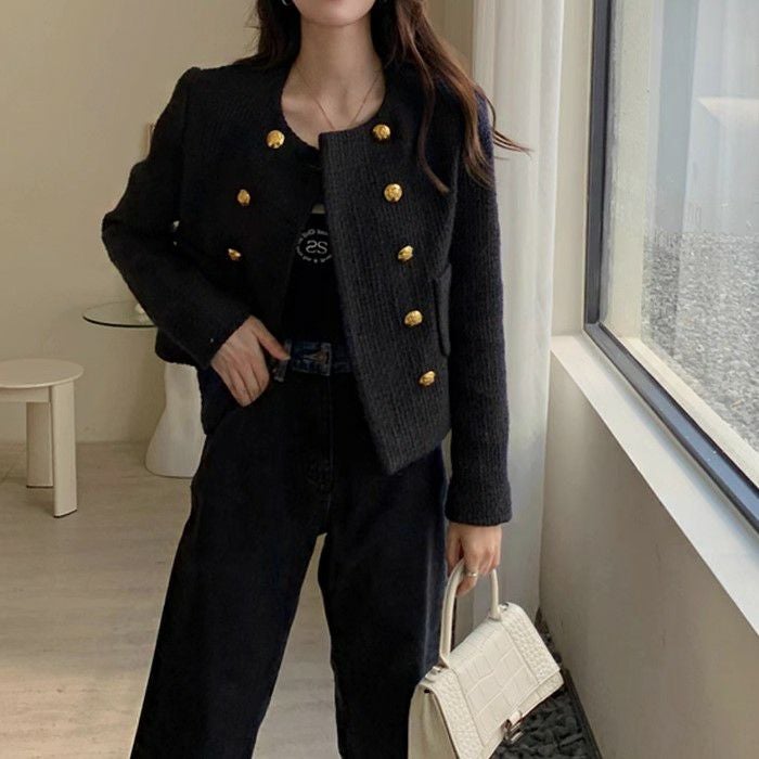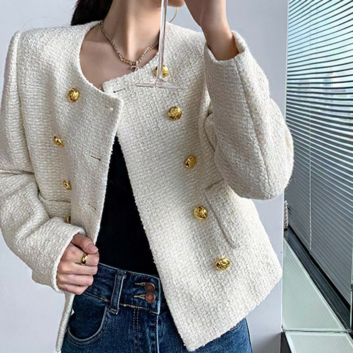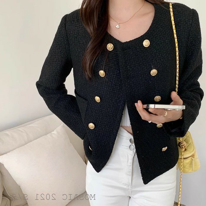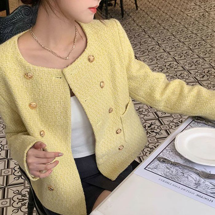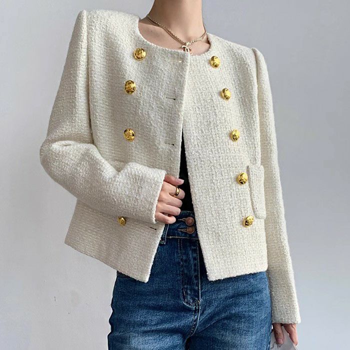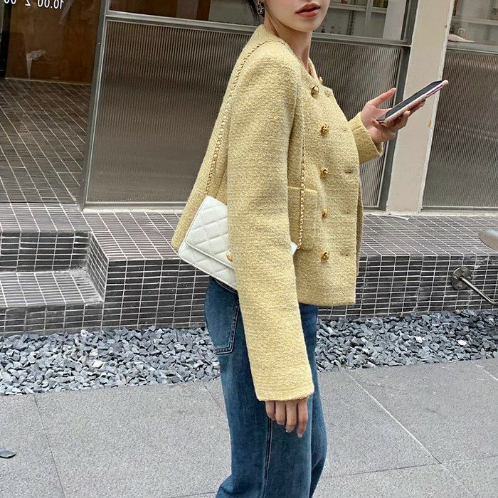 一部即納 3color ダブル ボタン ショート ツイード ジャケット