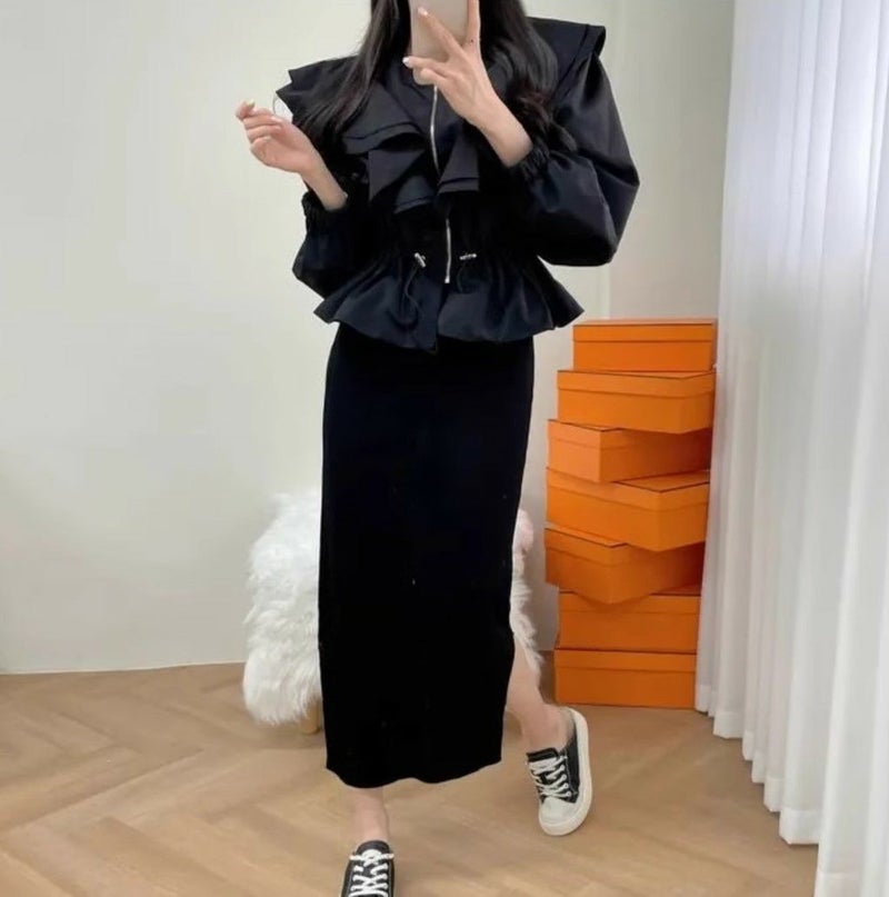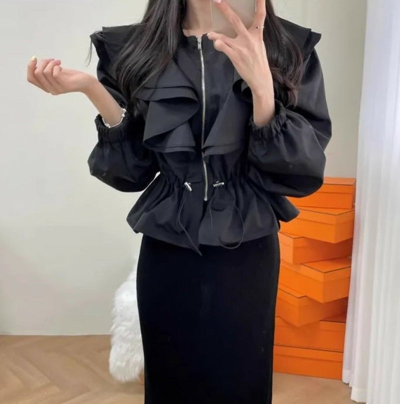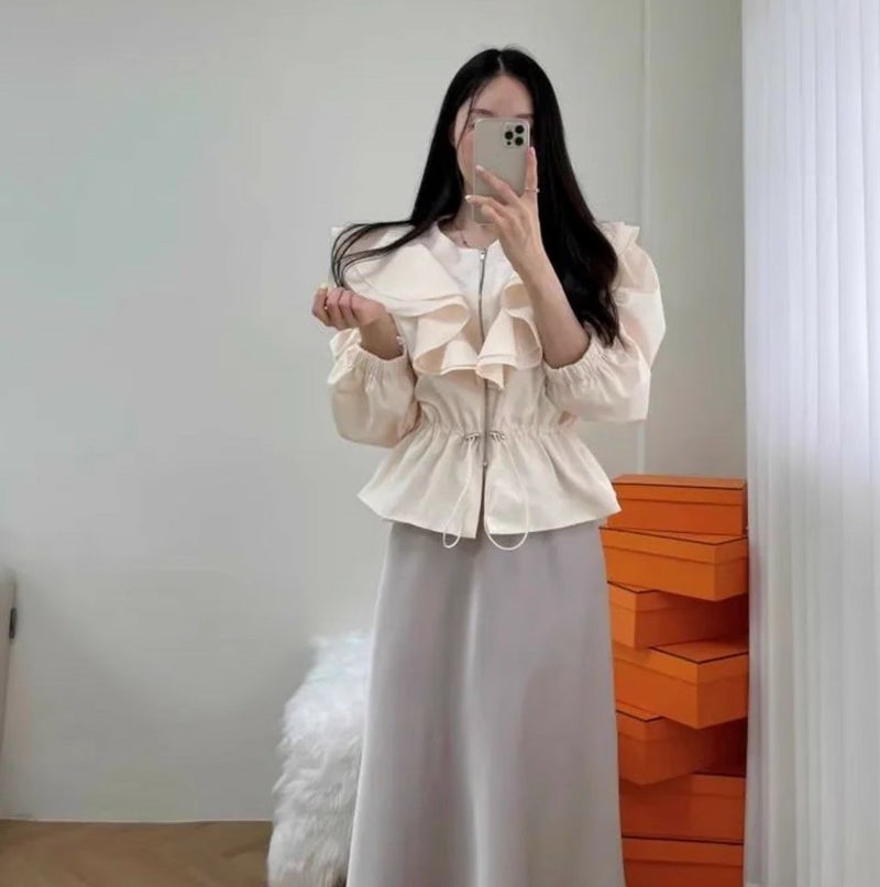 ドローストリングコード付きでペプラムシルエットにウエストマークできスタイルアップも叶います。