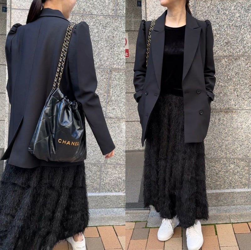 ギャザーのポワン袖が甘さをプラスしたモードな一着