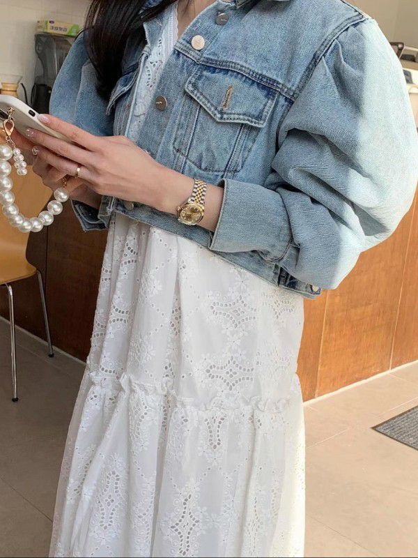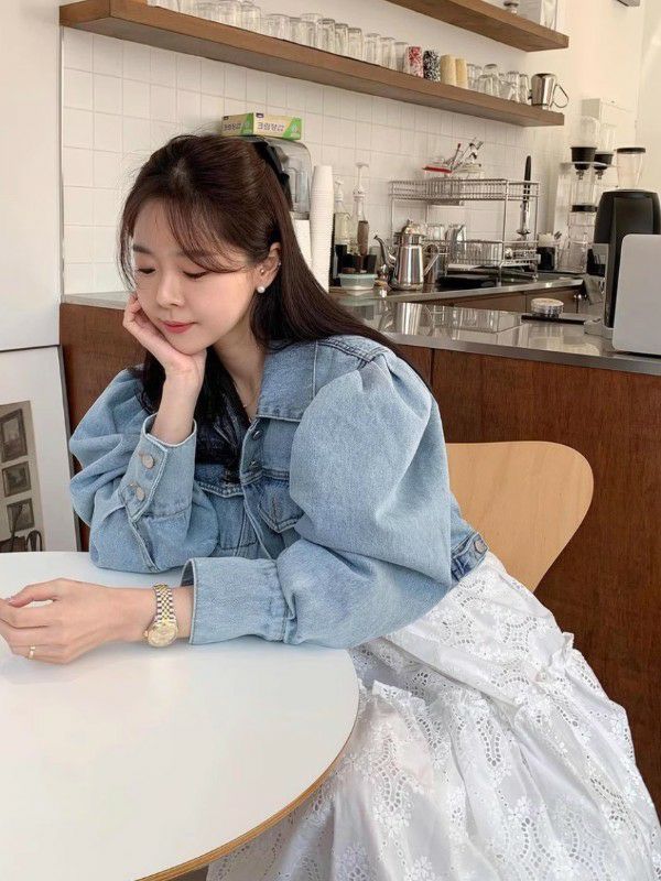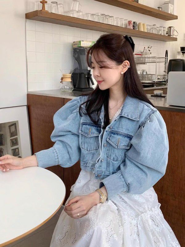 予約 ボリュームスリーブ ショート丈 デニムジャケット