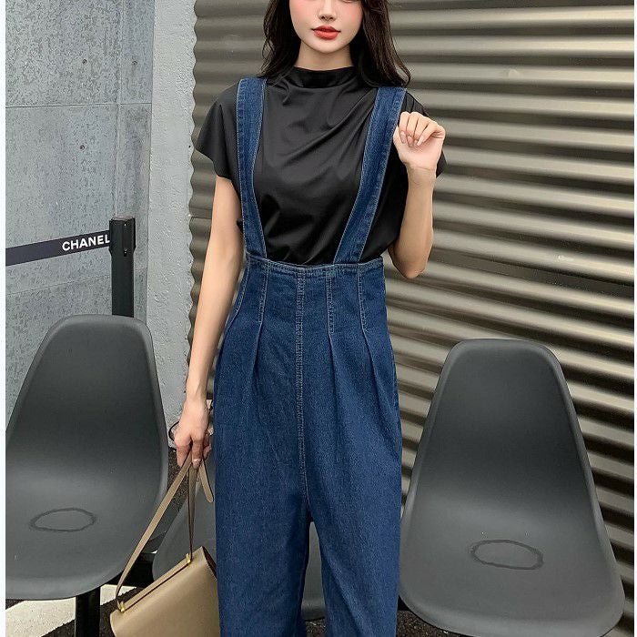 ハイウエストでスタイルアップも叶うデニムサロペット