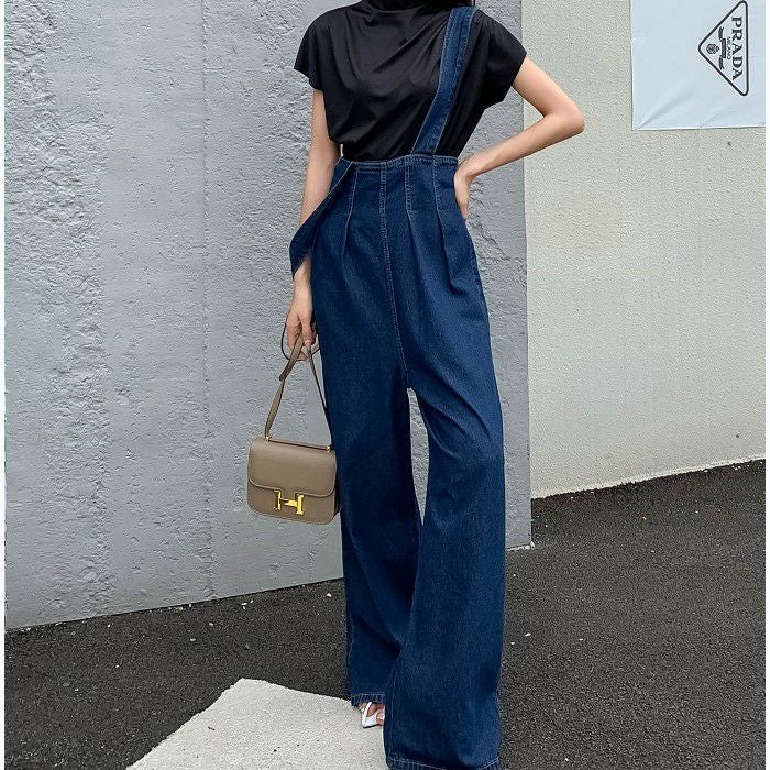 予約ハイウエスト デニム サロペット