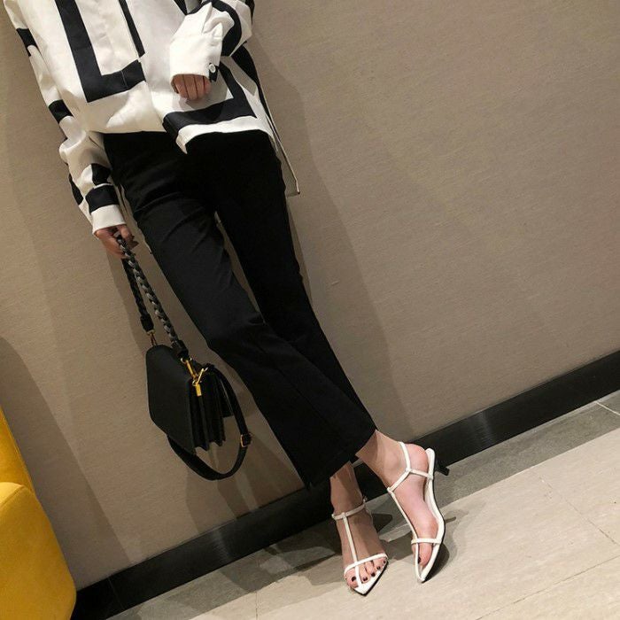 トレンドのポインテッドトゥのオープン サンダル。