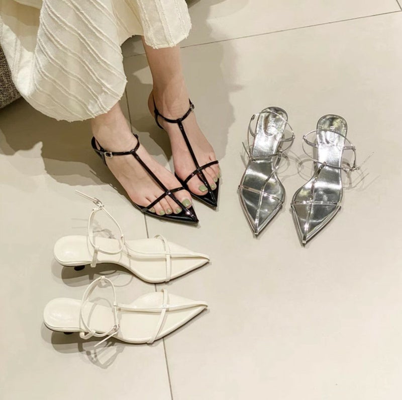 3. 予約 4color オープン ケージ ポインテッドトゥ サンダル