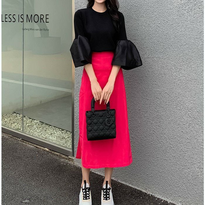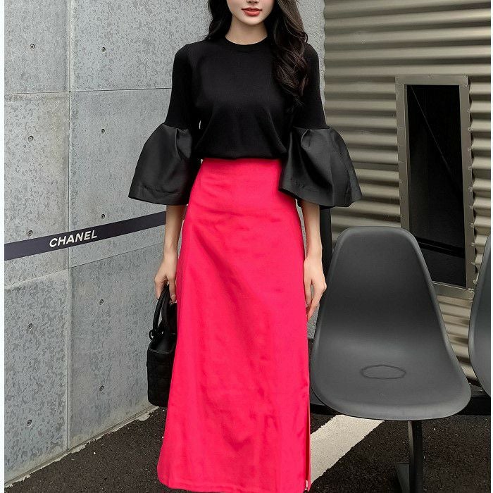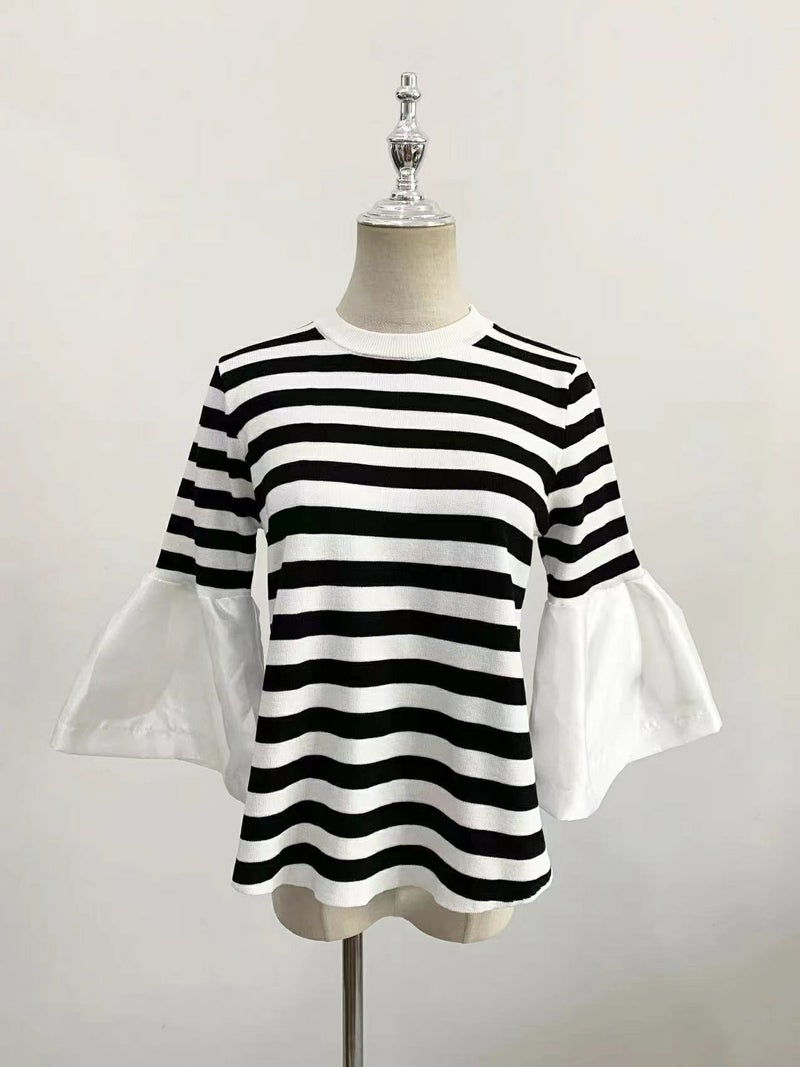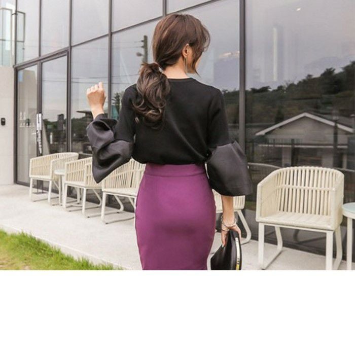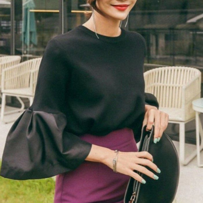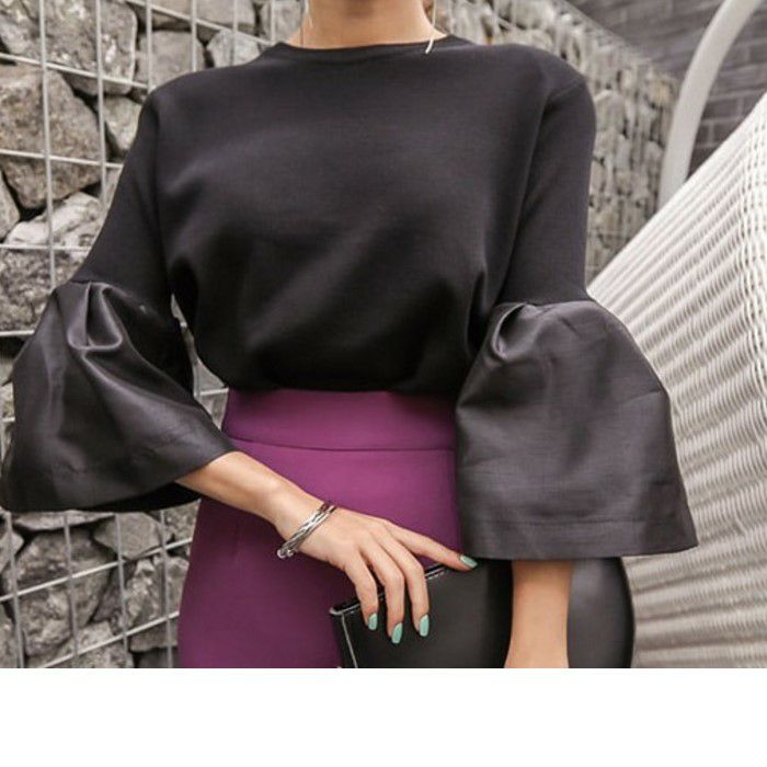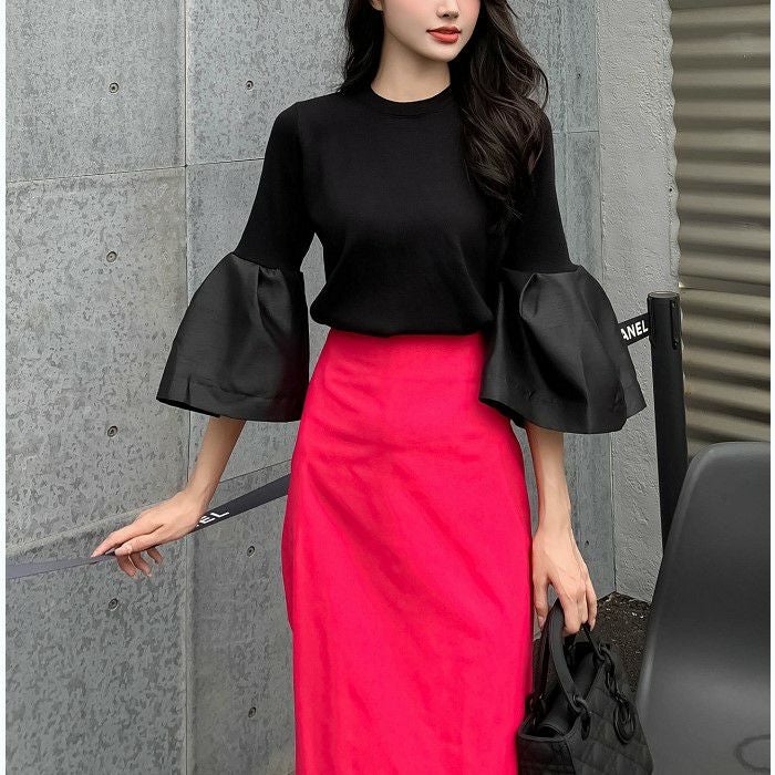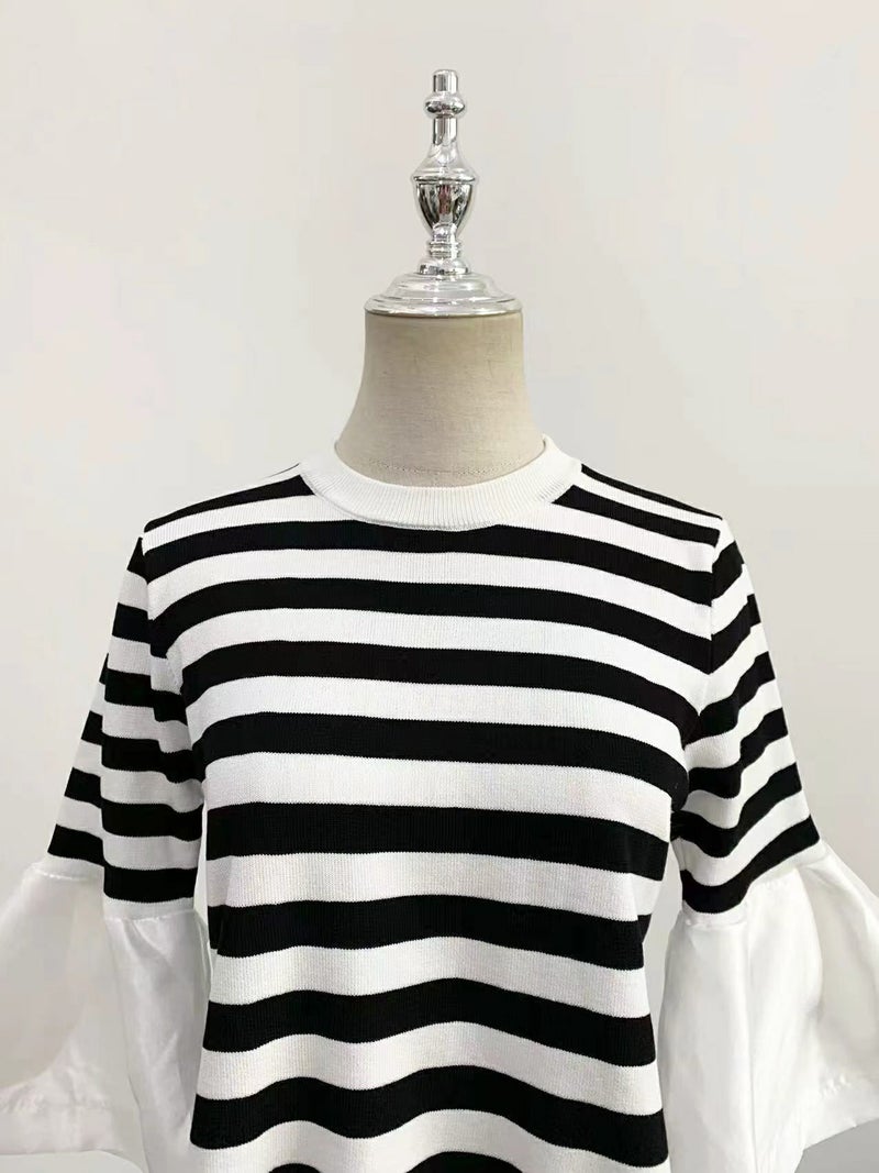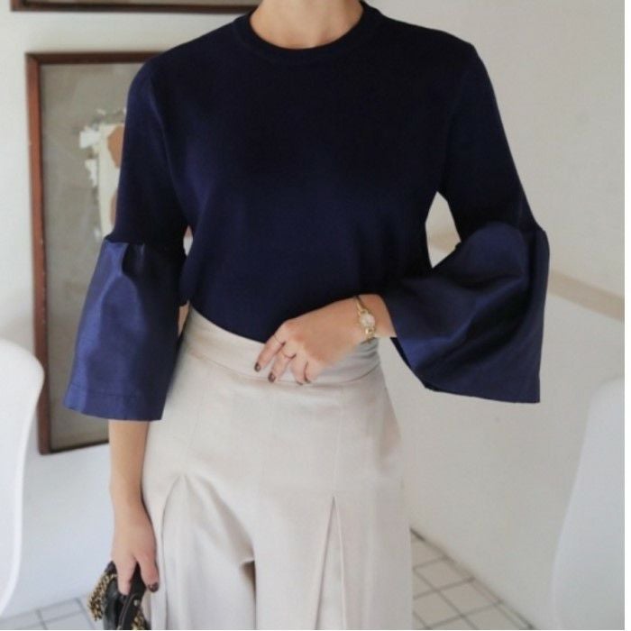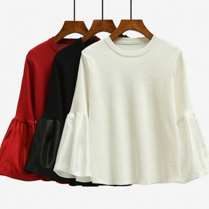 一部即納 5color デザイン袖 切り替え クルーネック プルオーバー