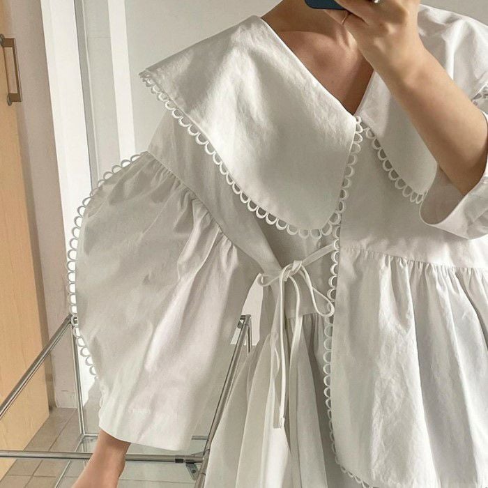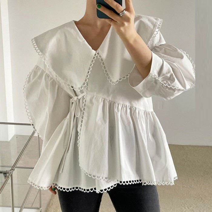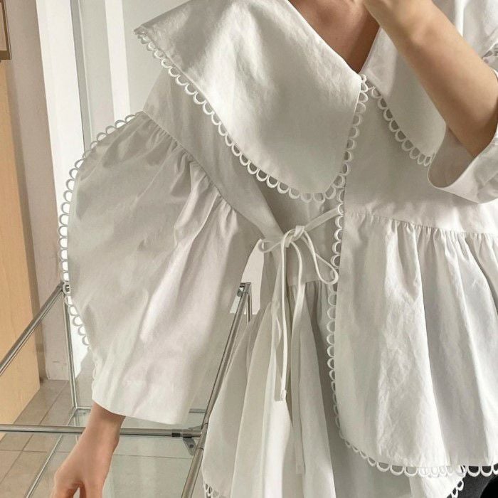予約 2color ビッグカラー デザインレース ラップ ブラウス