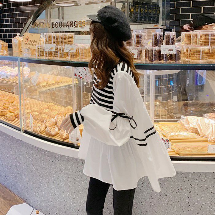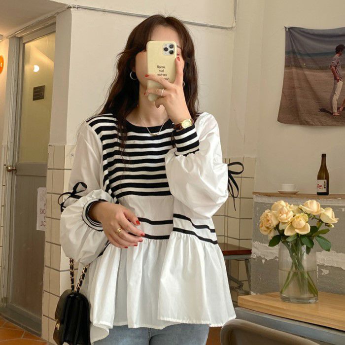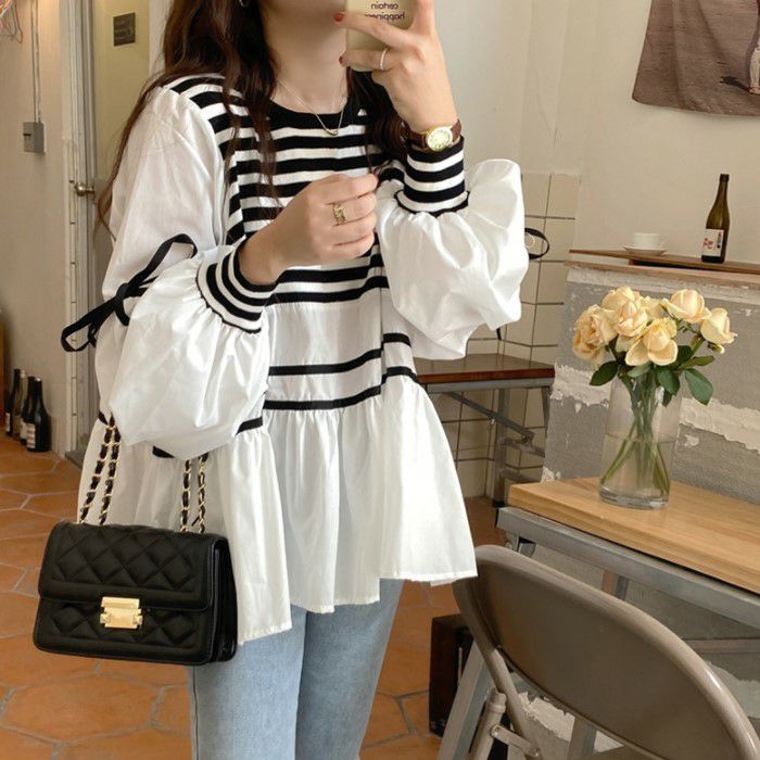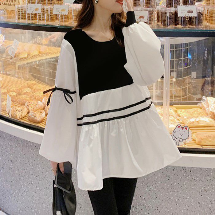 予約 2color 切替デザイン リボン ボリューム スリーブ プルオーバー