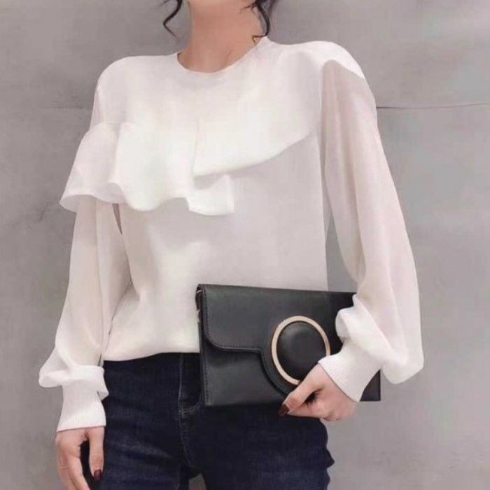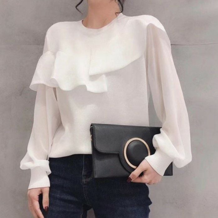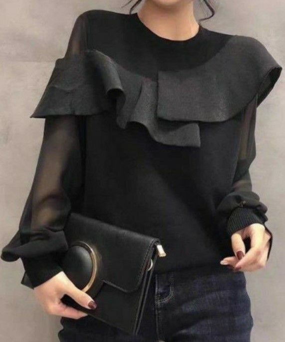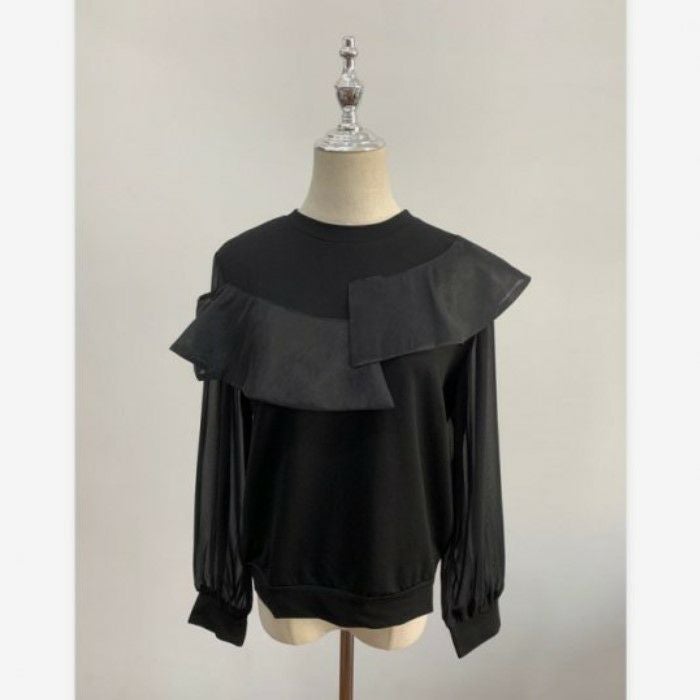 3. 予約 2color シアー素材 アシンメトリー プルオーバー トップス