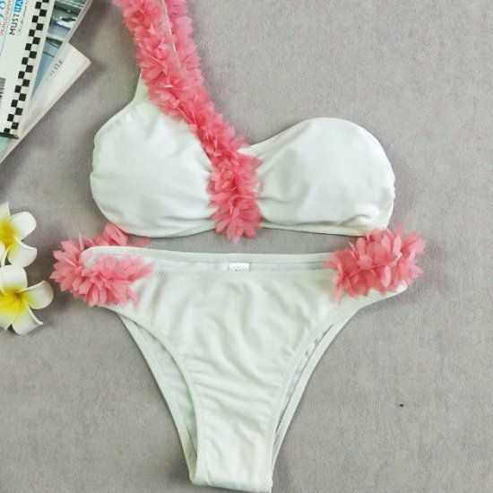 即納*2color ワンショルダー 立体フラワー付き ビキニ