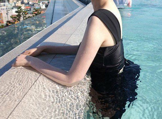 予約 2color サイド カットオフ ワンピース シアー スイムウェア