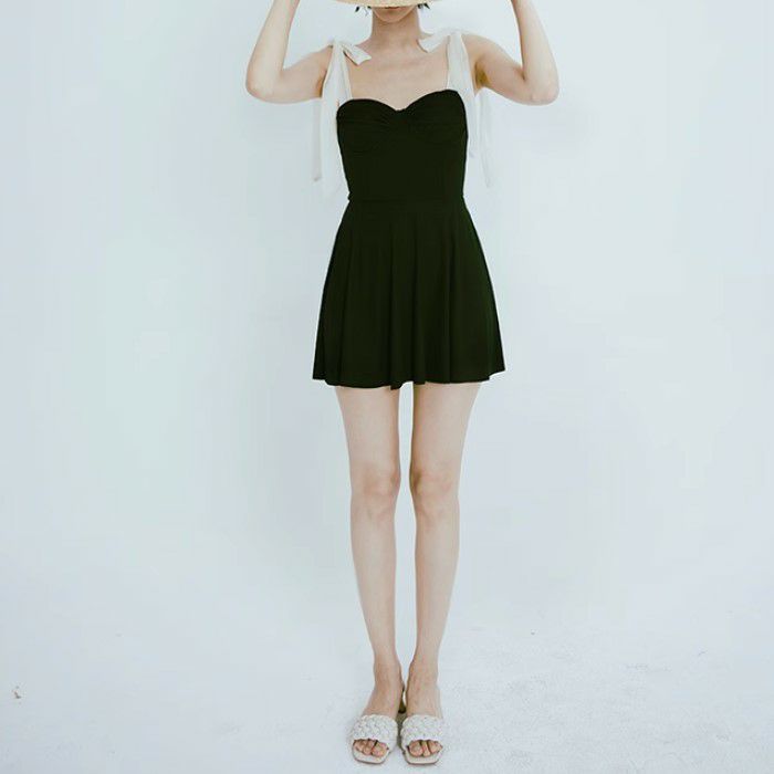 予約 2color パイピング ウエストリボン ワンピース スイムウェア