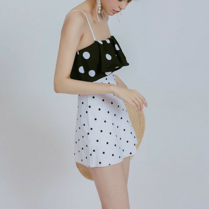 一部即納 ドット バイカラー フレア ワンピース スイムウェア