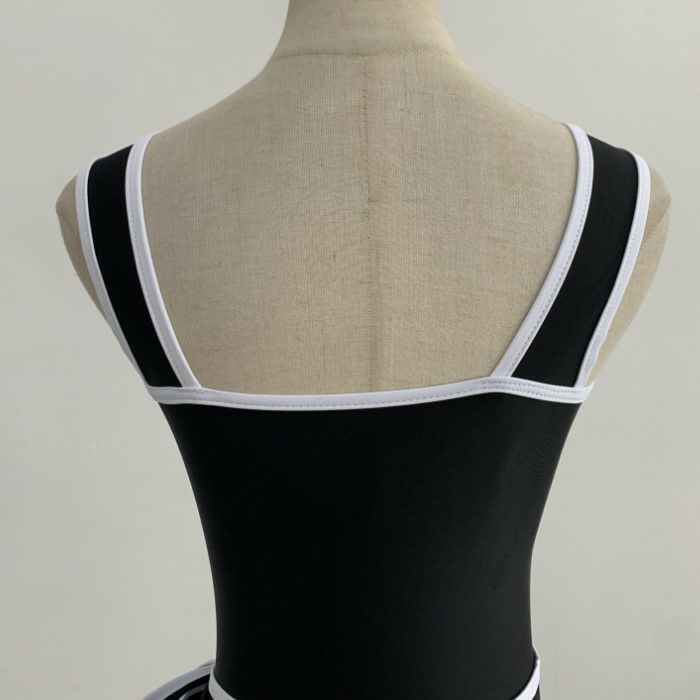 予約 2color パイピング ウエストリボン ワンピース スイムウェア