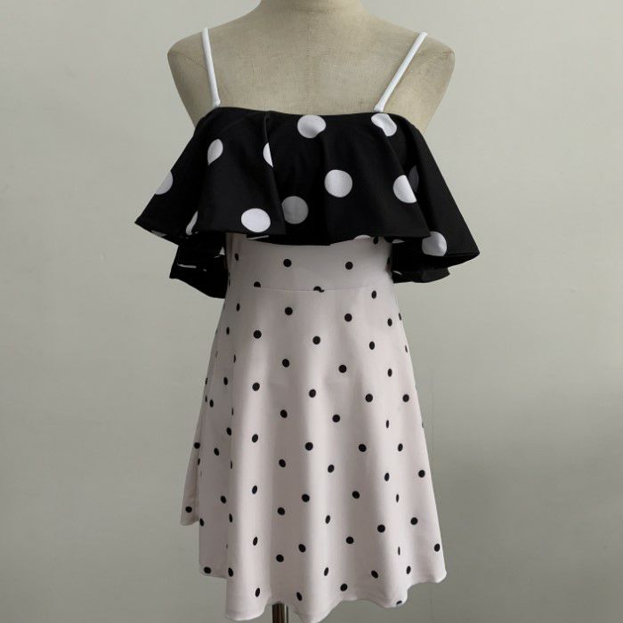 一部即納 ドット バイカラー フレア ワンピース スイムウェア