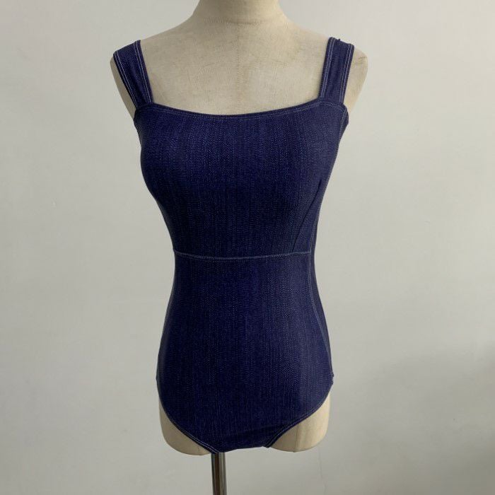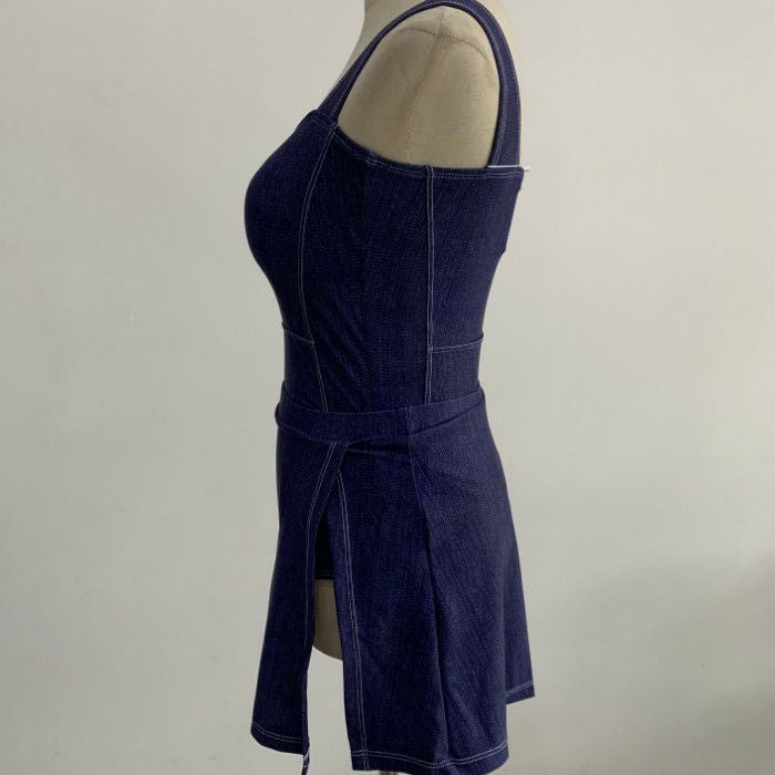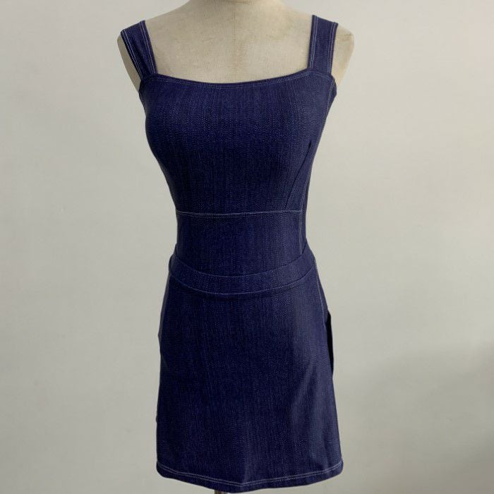 予約 デニム スリットスカート付き ワンピース スイムウェア
