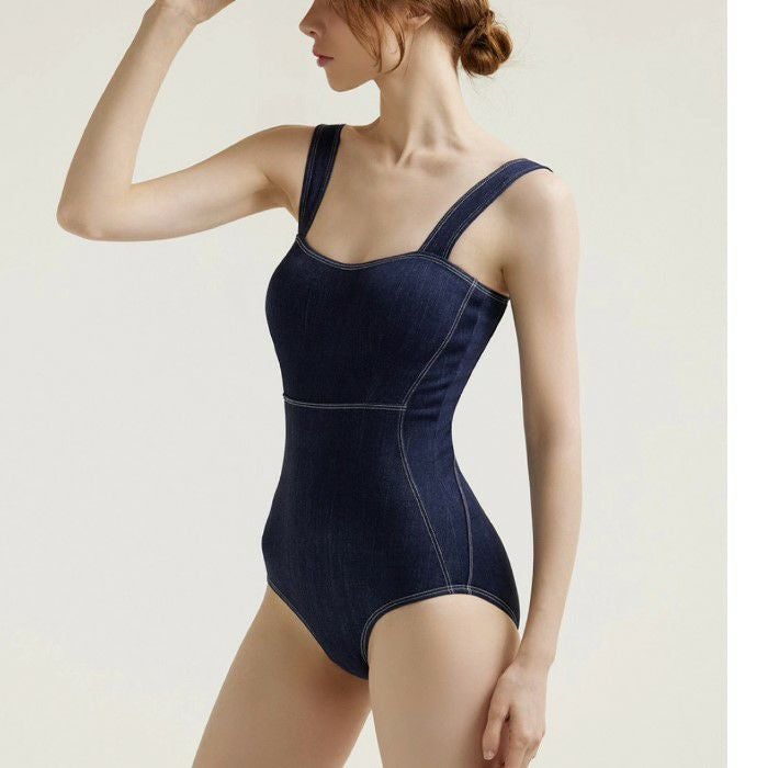 デニム調生地がカジュアルで可愛いのスイムウェア