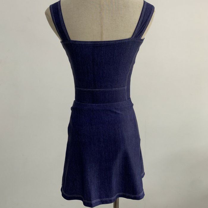 予約 デニム スリットスカート付き ワンピース スイムウェア