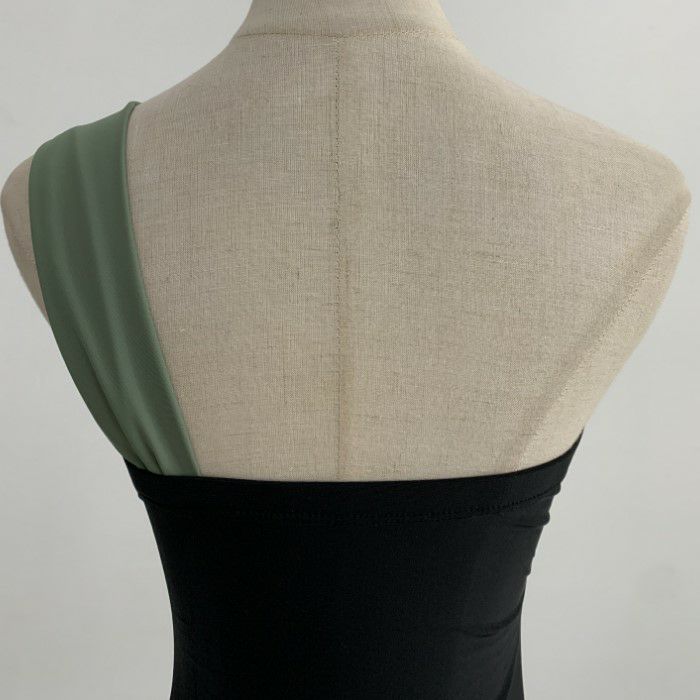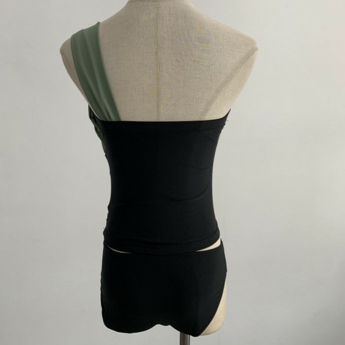 一部即納 バイカラー ワンショルダー タンキニ ビキニ スイムウェア