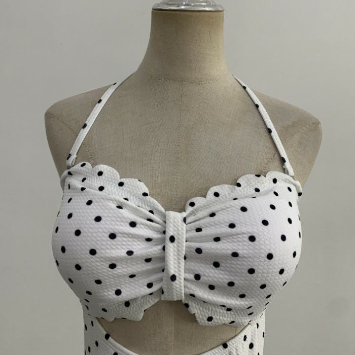 予約 DOT エンボス生地 スカラップ ワンピース モノキニ スイムウェア