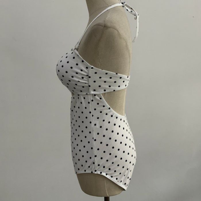 エンボス生地のドット柄ワンピーススイムウエア