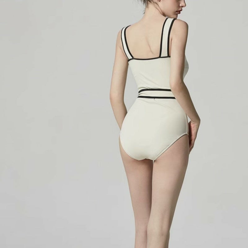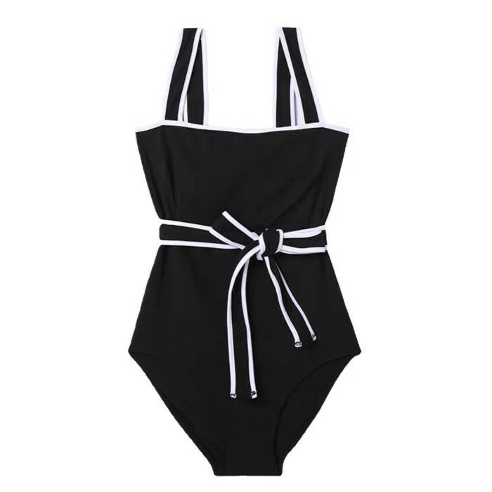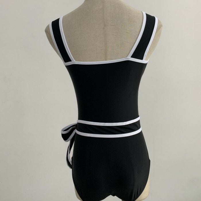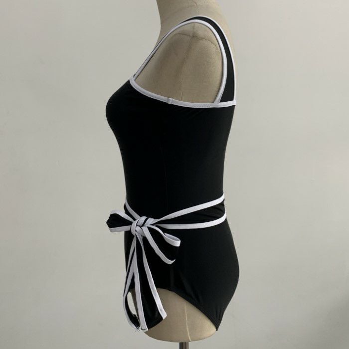 予約 2color パイピング ウエストリボン ワンピース スイムウェア