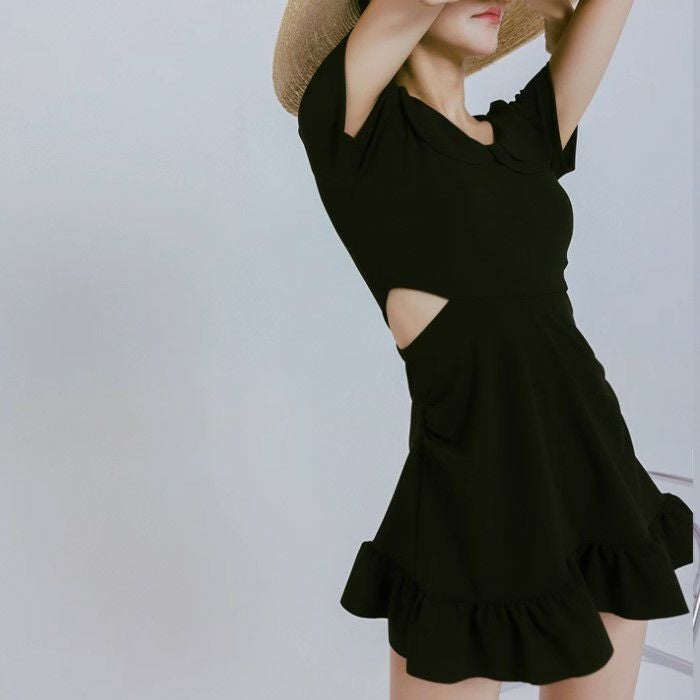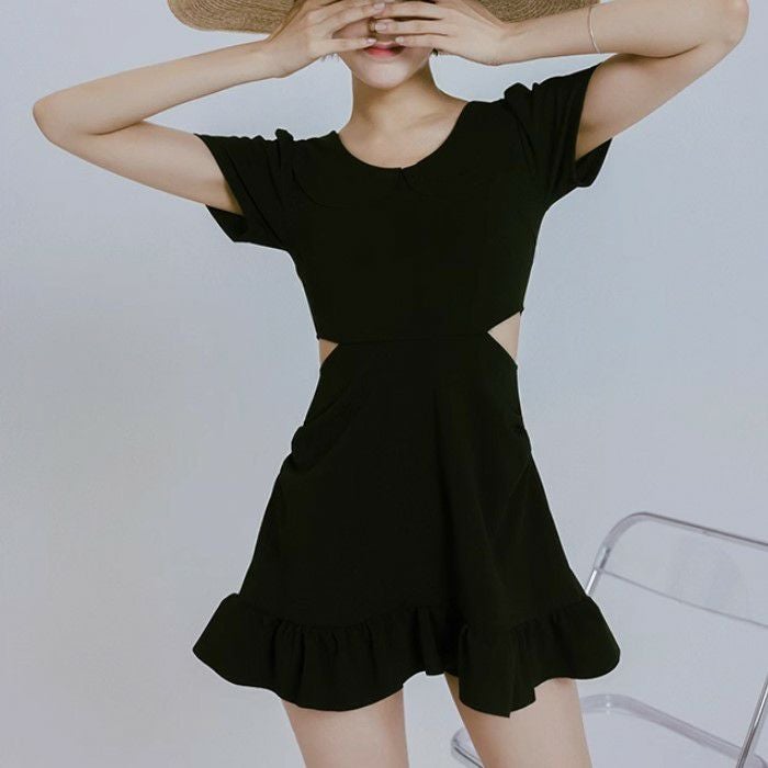 予約 サイド カットオフ 襟付き ワンピース スイムウェア