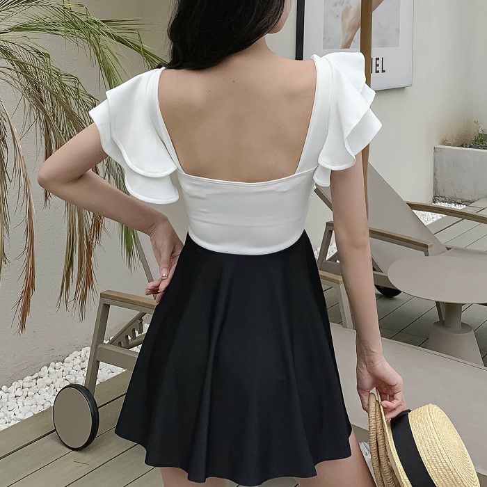 一部即納 バイカラー ティアード ワンピース スイムウェア