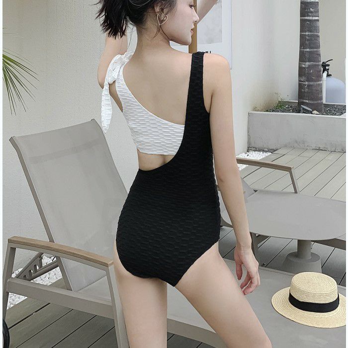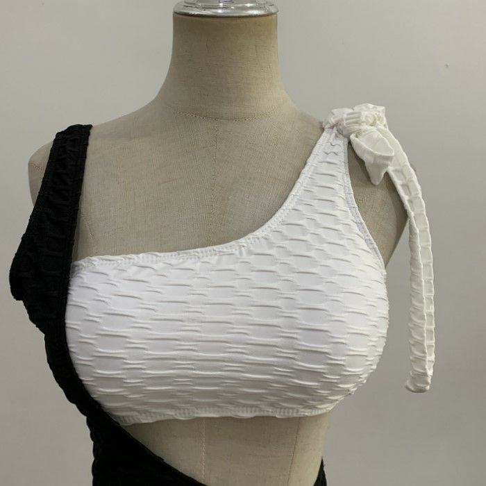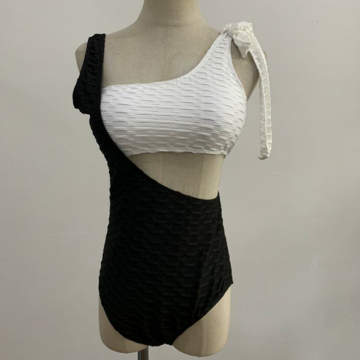 エンボスデザインのワンショルダースイムウェア