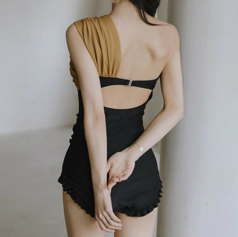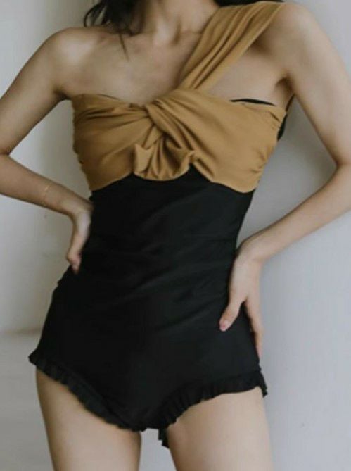 バイカラーのトレンドのワンショルダースイムウェア