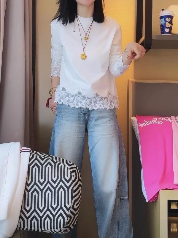 予約 2color カットワークレース ペプラムブラウス