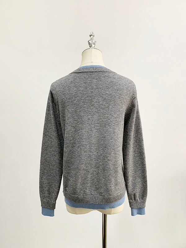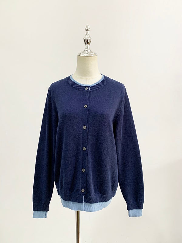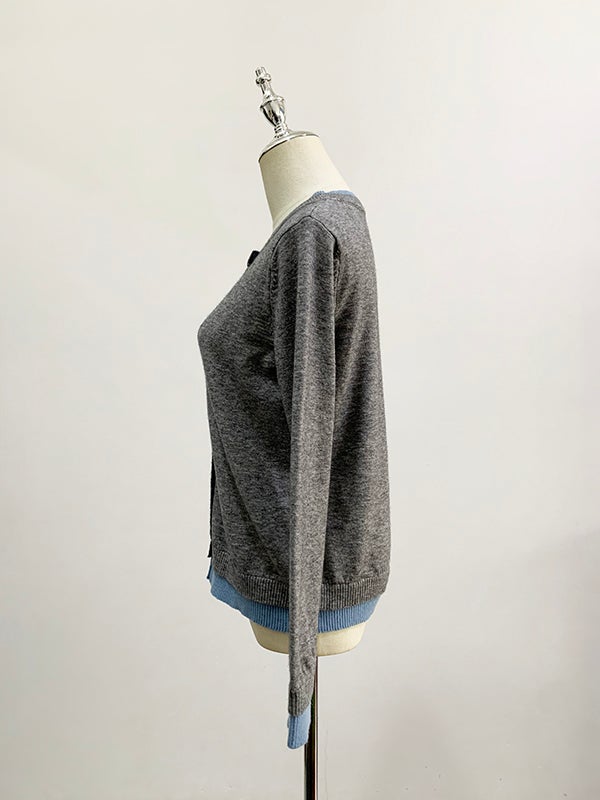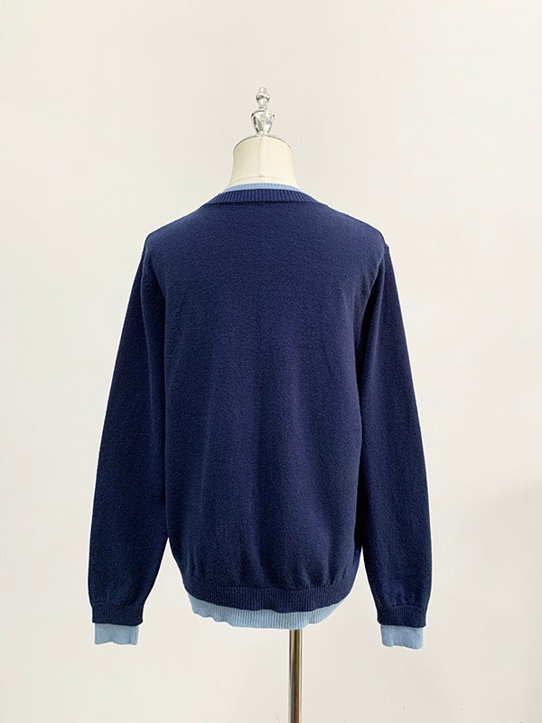 予約3color Denim ドッキング ニット カーディガン