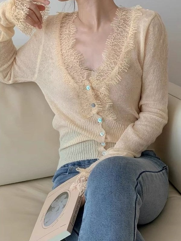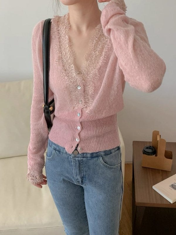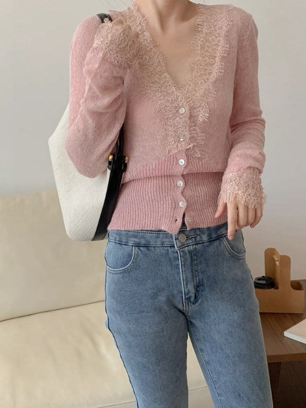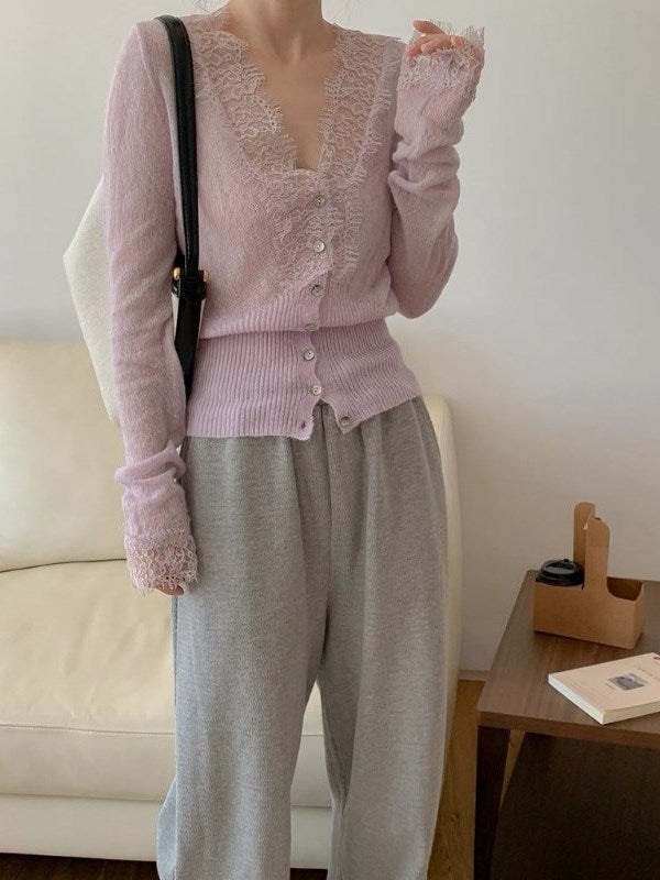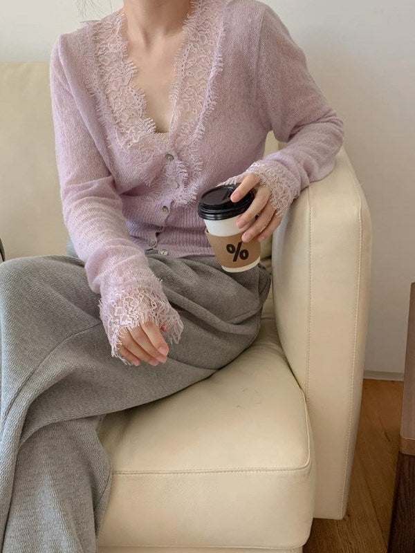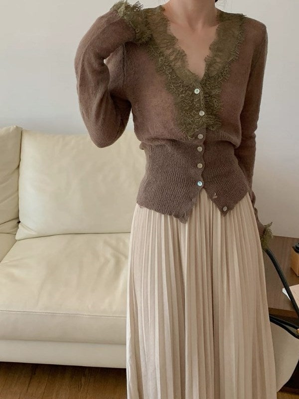 予約 2color フェザーアクセント ニットカーディガン