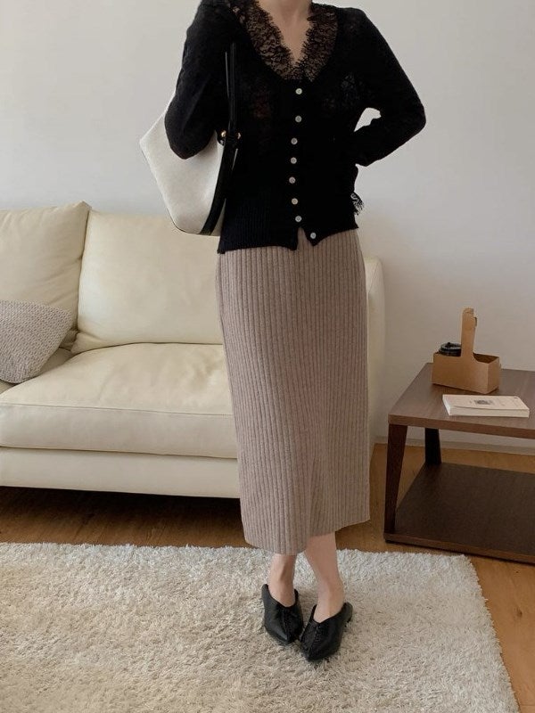 予約 3color Vネック ニットセットアップ ロング マーメードスカート