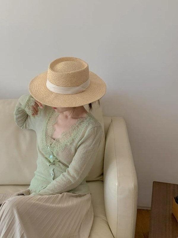 予約3color ヘム リボン ニット カーディガン