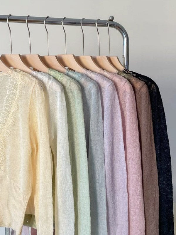 予約 3color シアーライト クルーネック カーデ