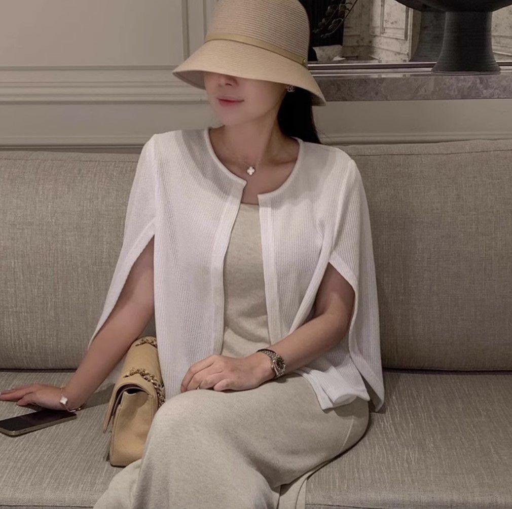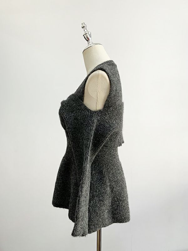予約 2color カットアウト スリーブ ケープ調 カーディガン