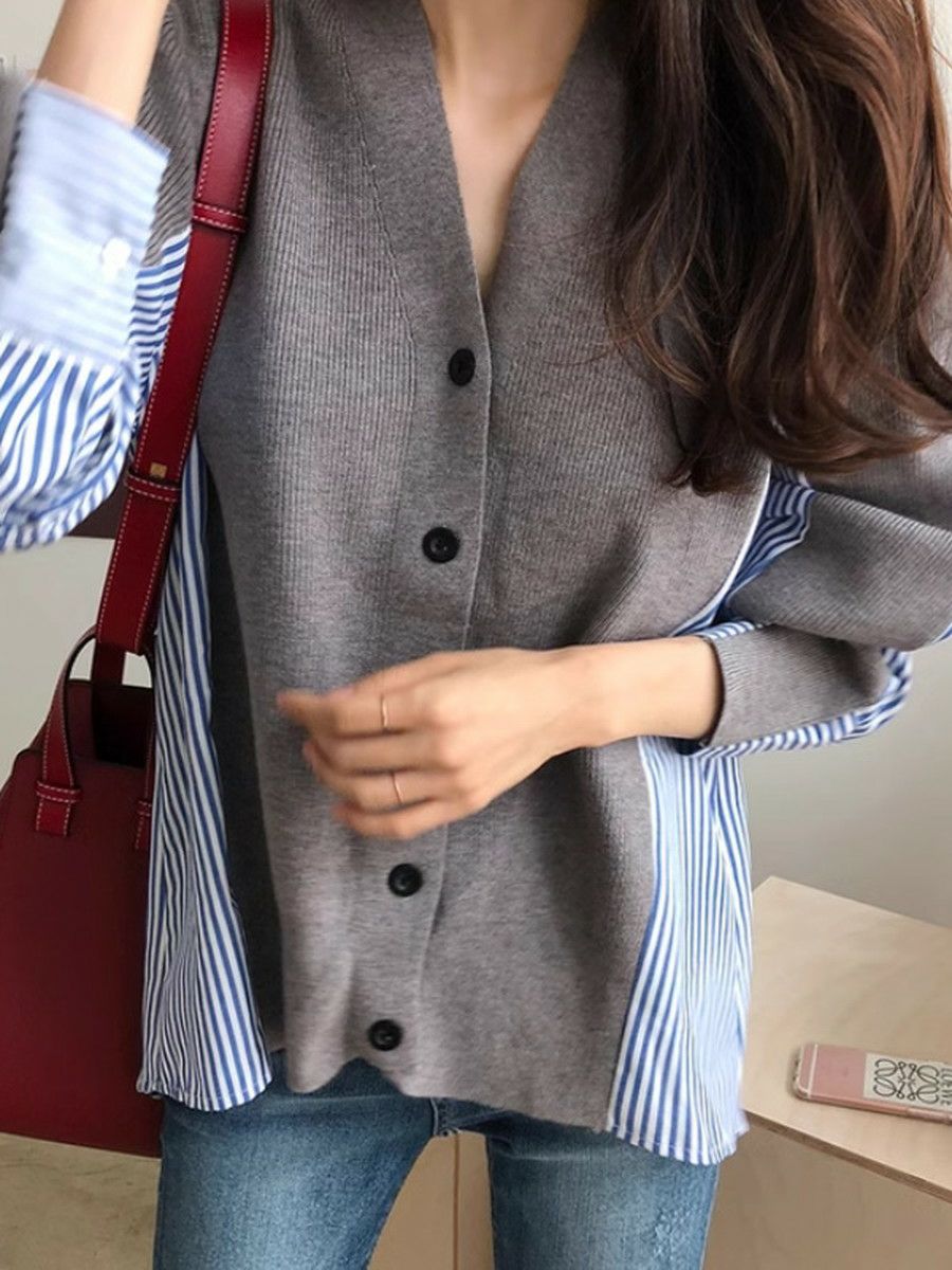 予約 3color ボタン ポイント カーディガン風 ニットプルオーバー