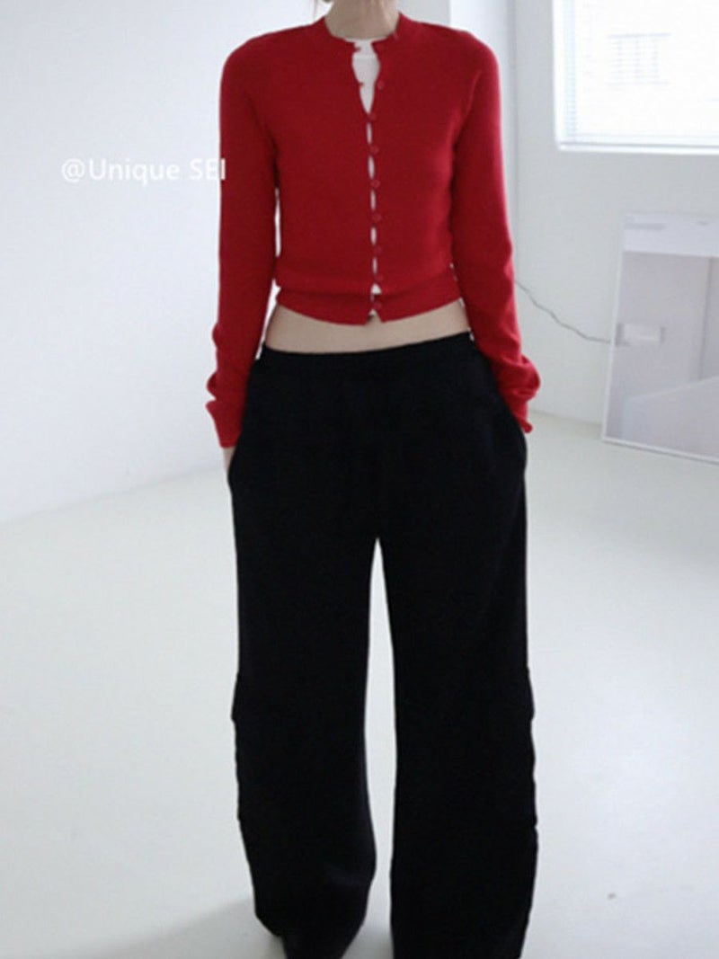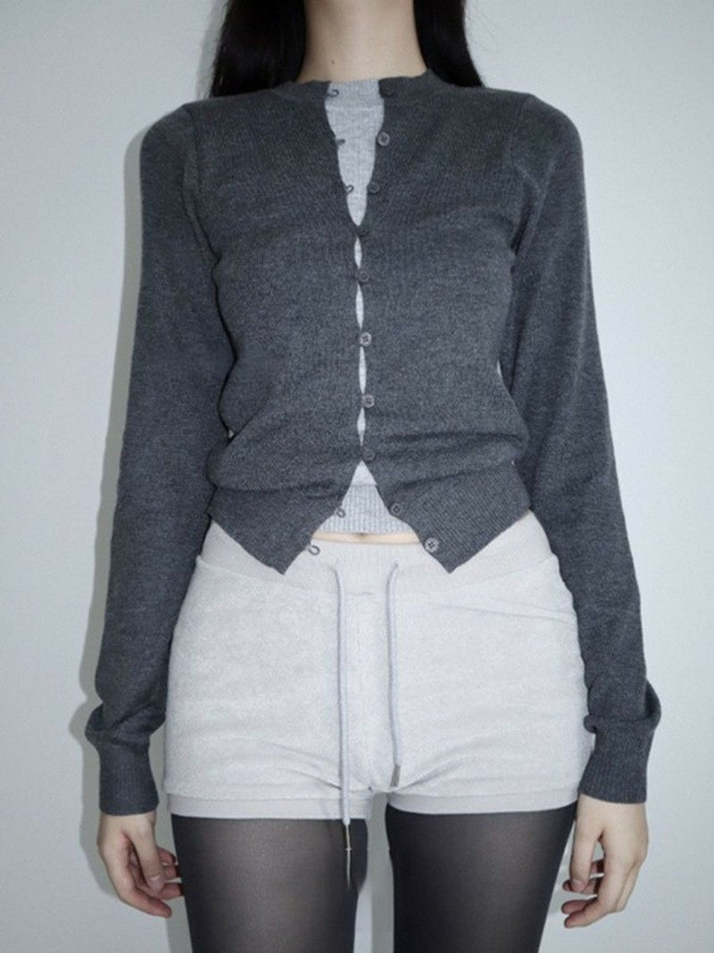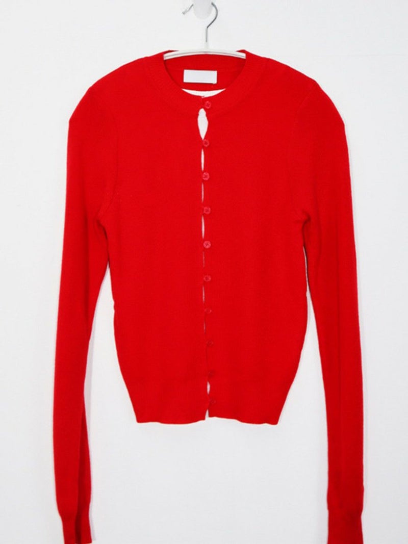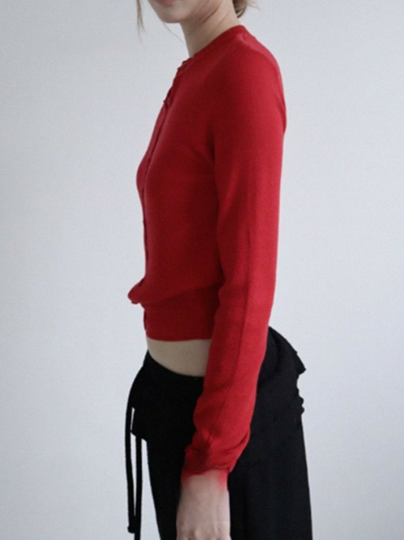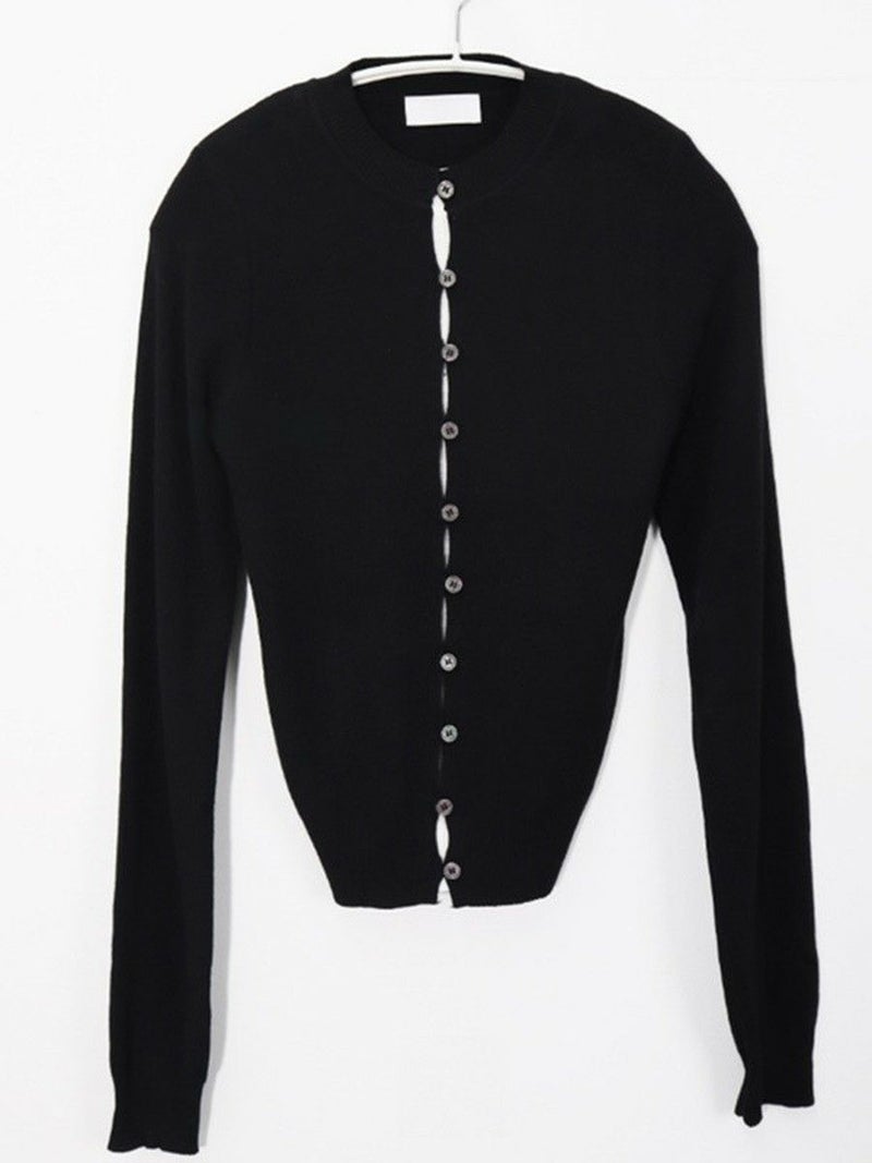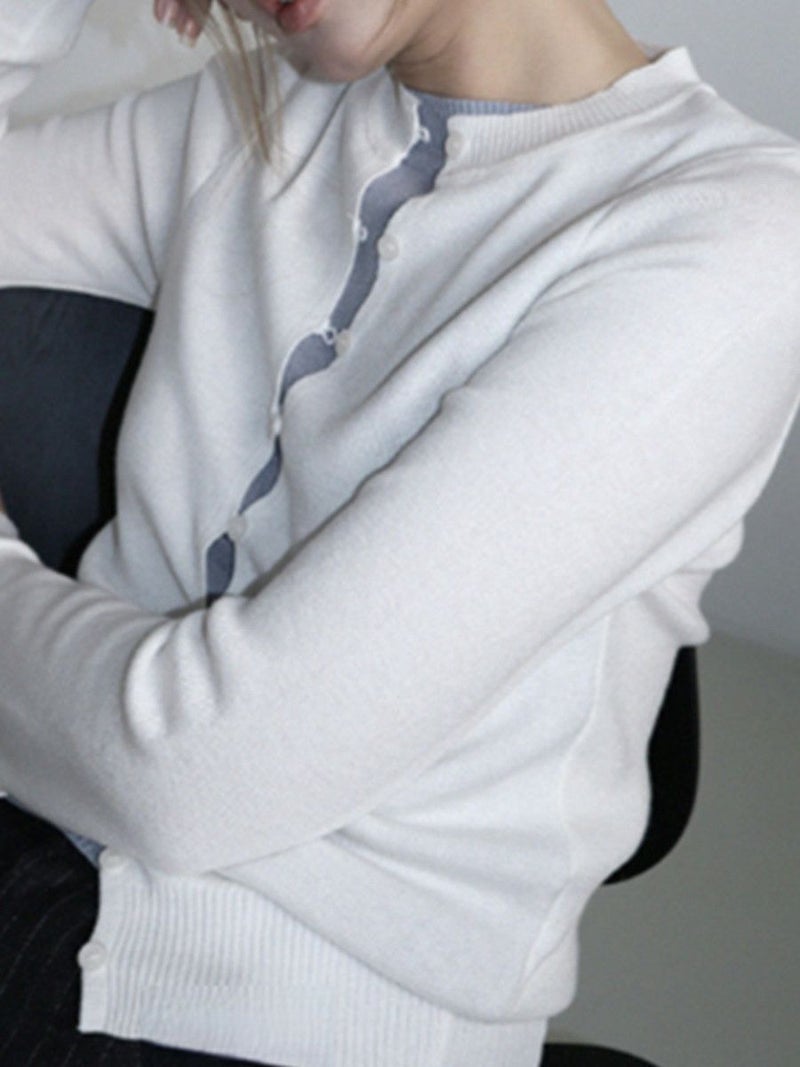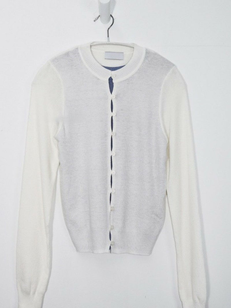 予約 3color ボタン ポイント カーディガン風 ニットプルオーバー