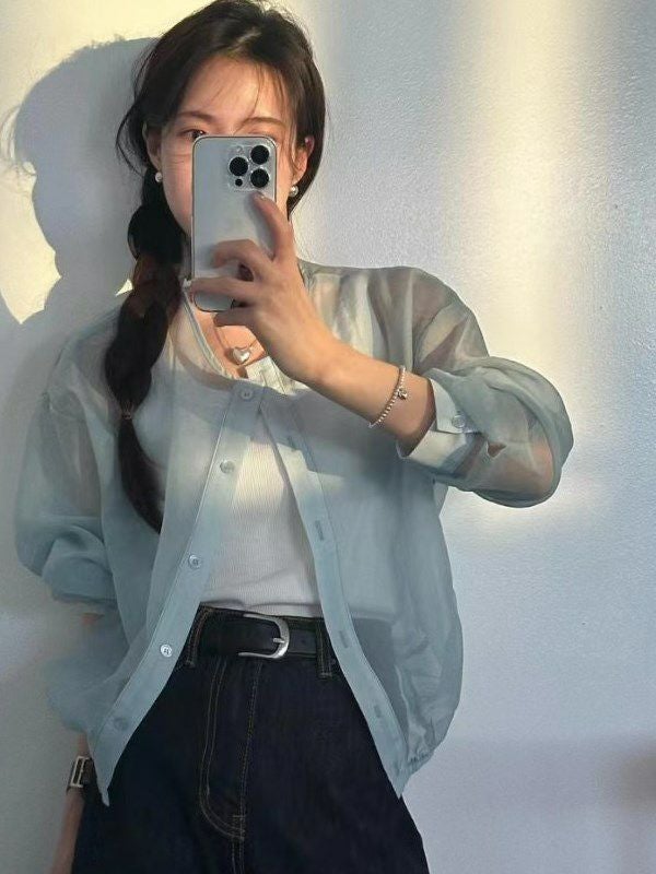 軽やかな透け感が魅力のシアーカーディガン。