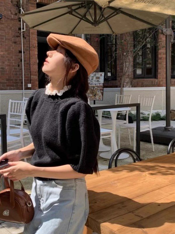 ふんわりとしたパフスリーブがシルエットに甘さをプラスします。