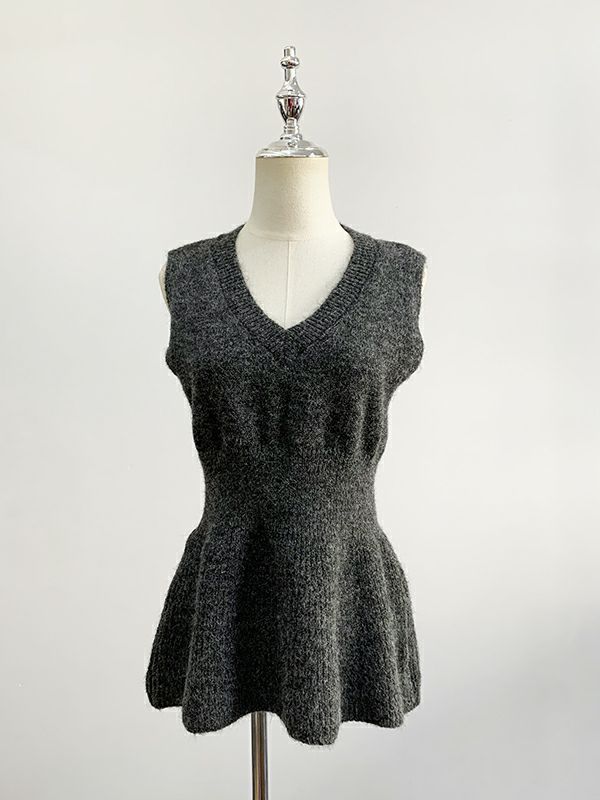 ノースリーブニットに、リボン調の変形デザインをドッキングした印象的な一枚。