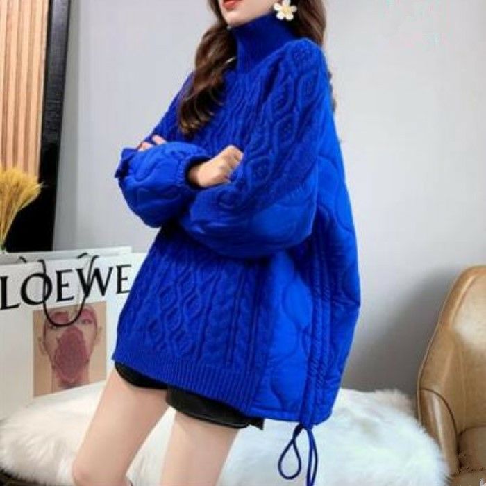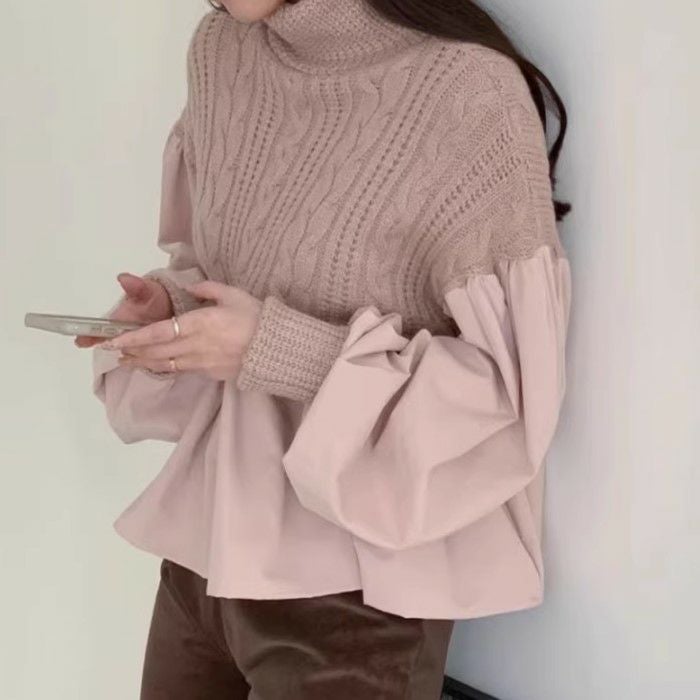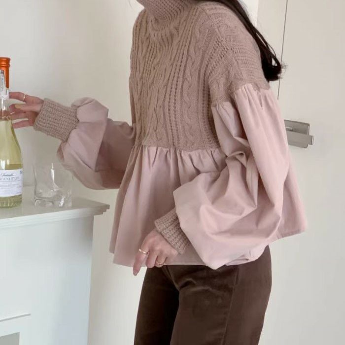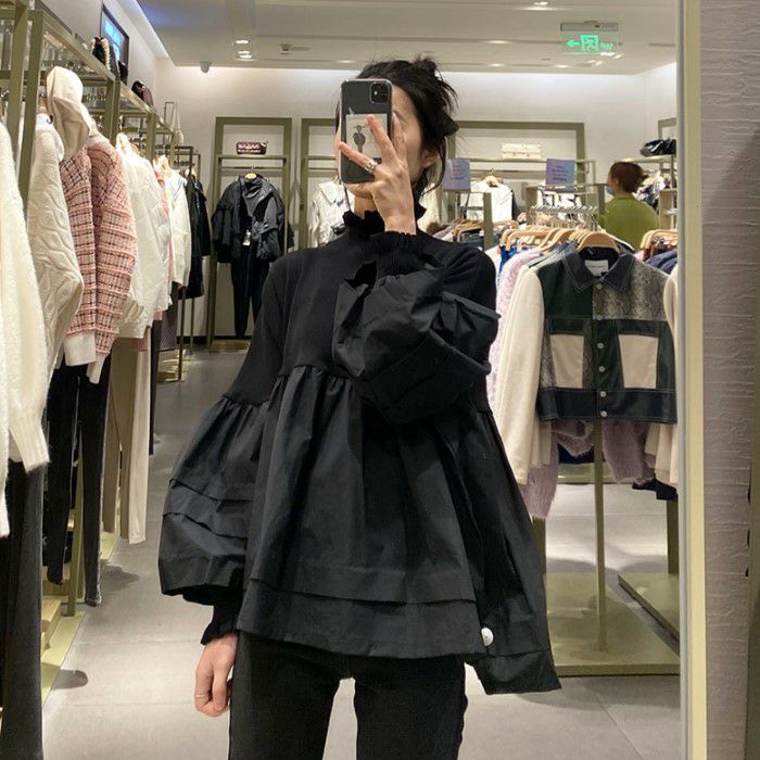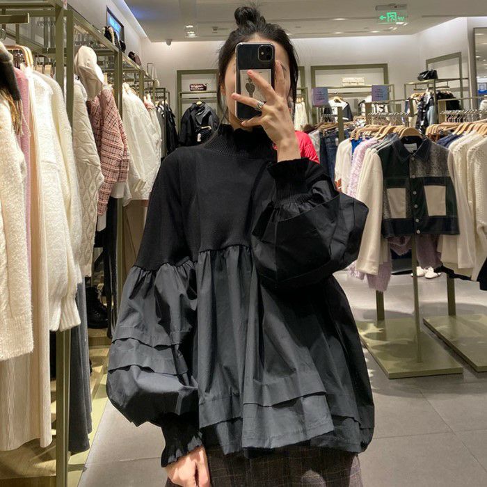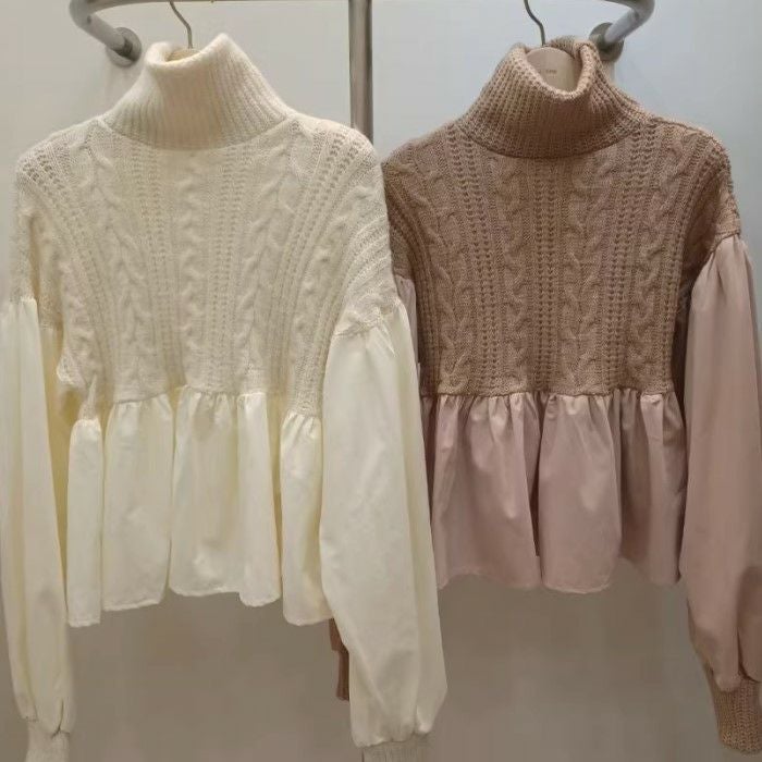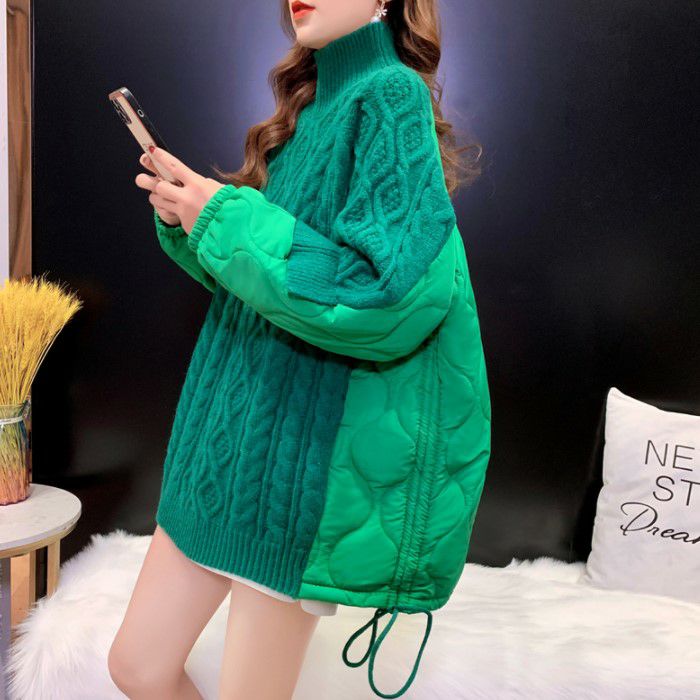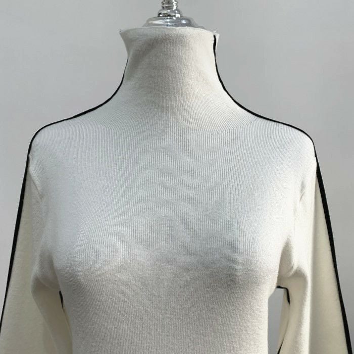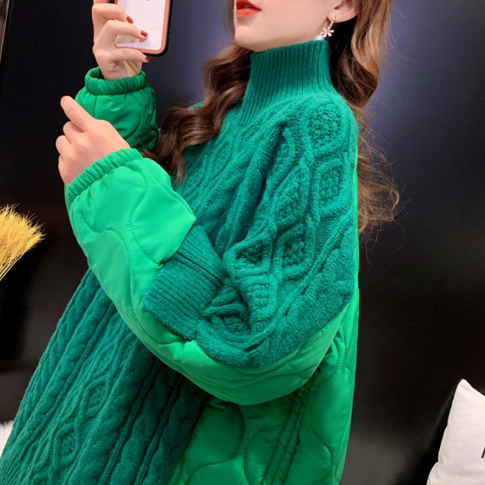 一部即納 4color キルティング ドッキング ハイネック ニット