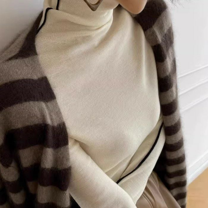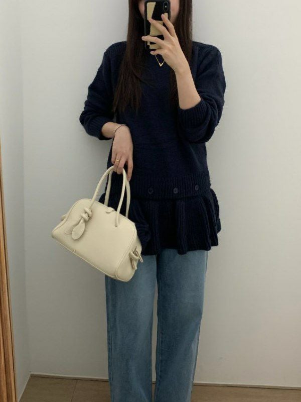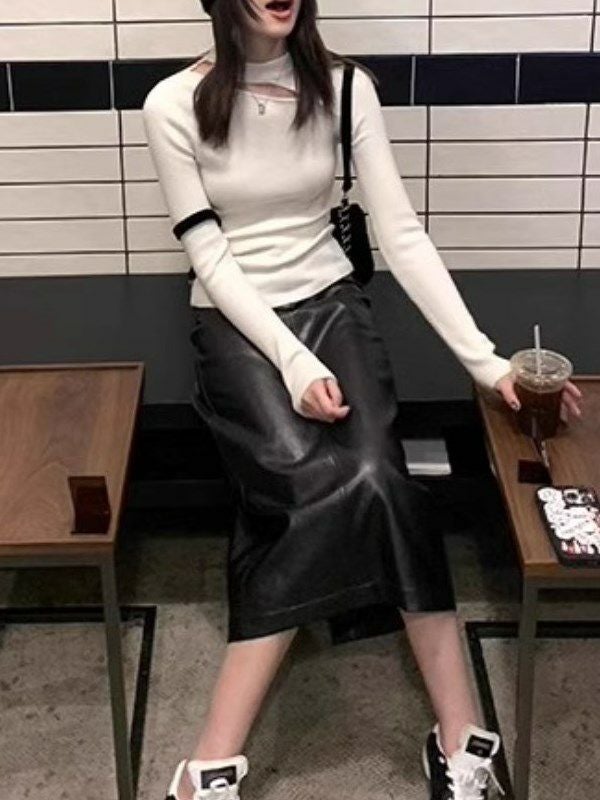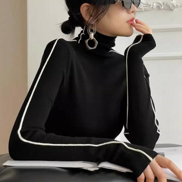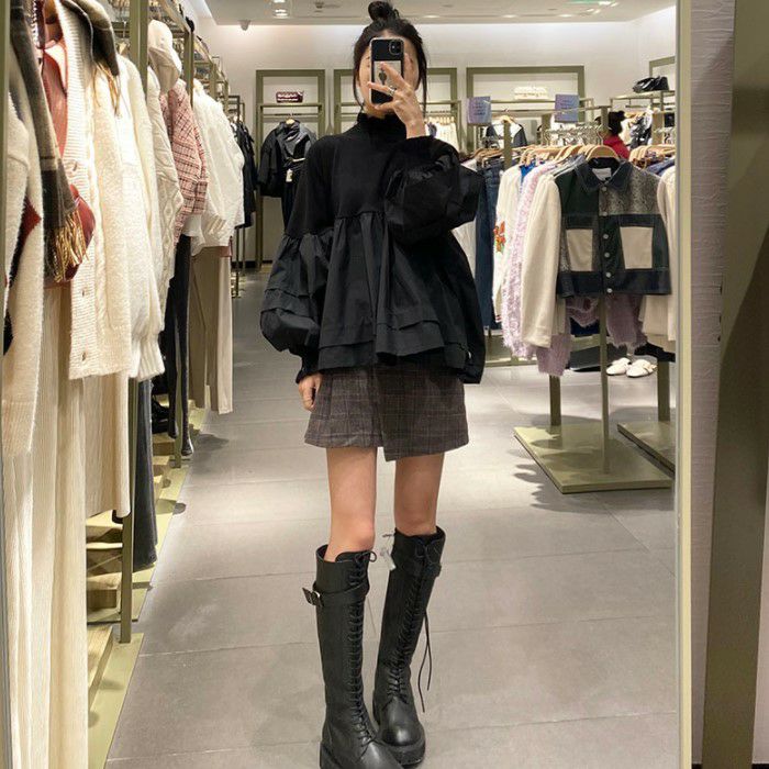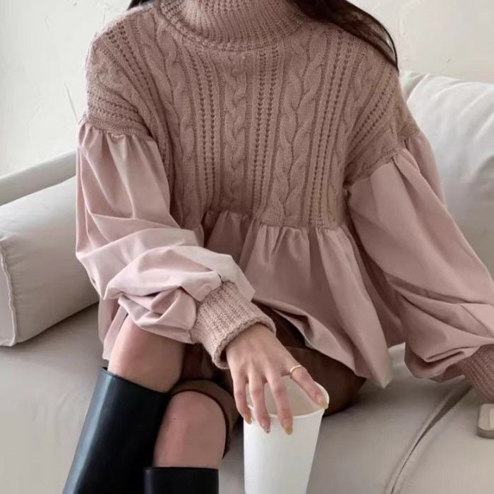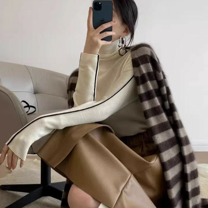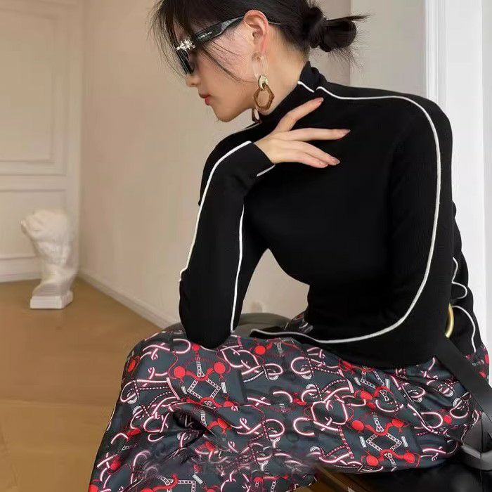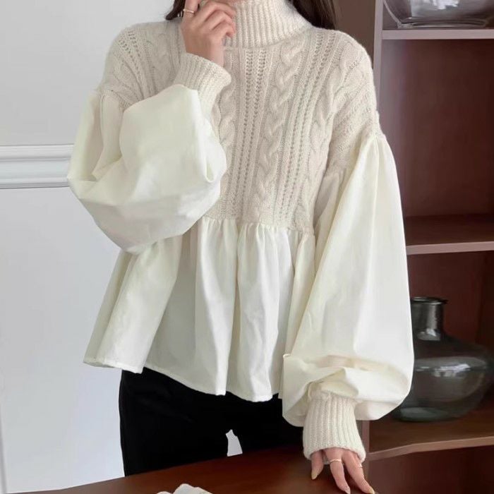 一部即納 4color キルティング ドッキング ハイネック ニット