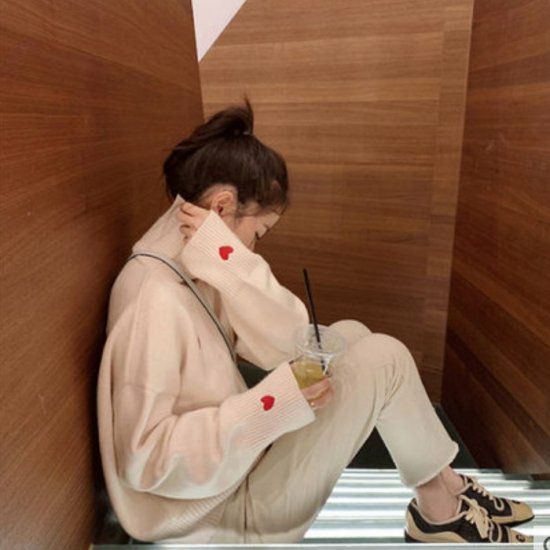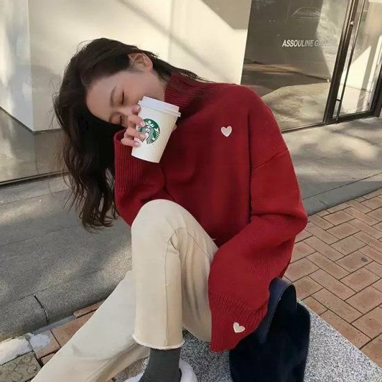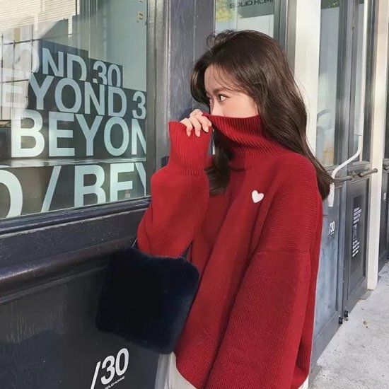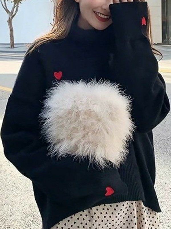 一部即納 3color ハートデザイン オーバーサイズ ハイネックニット