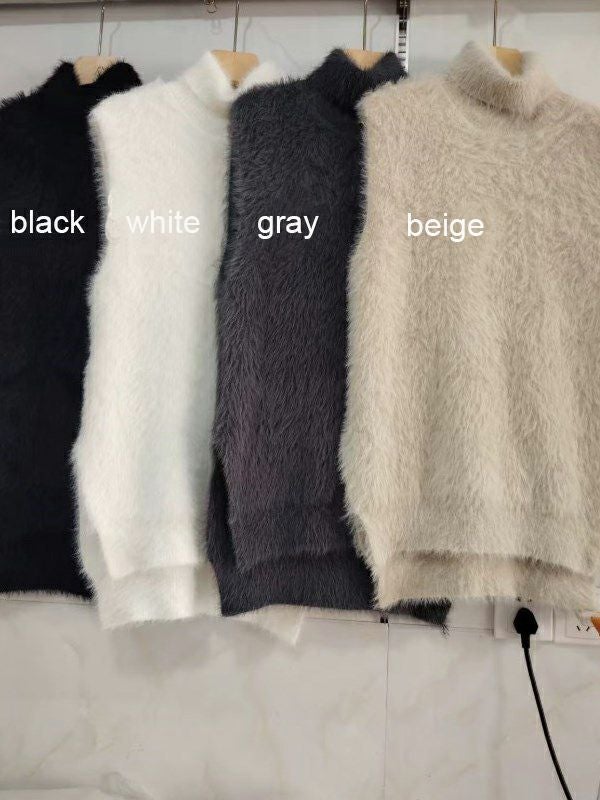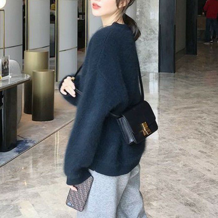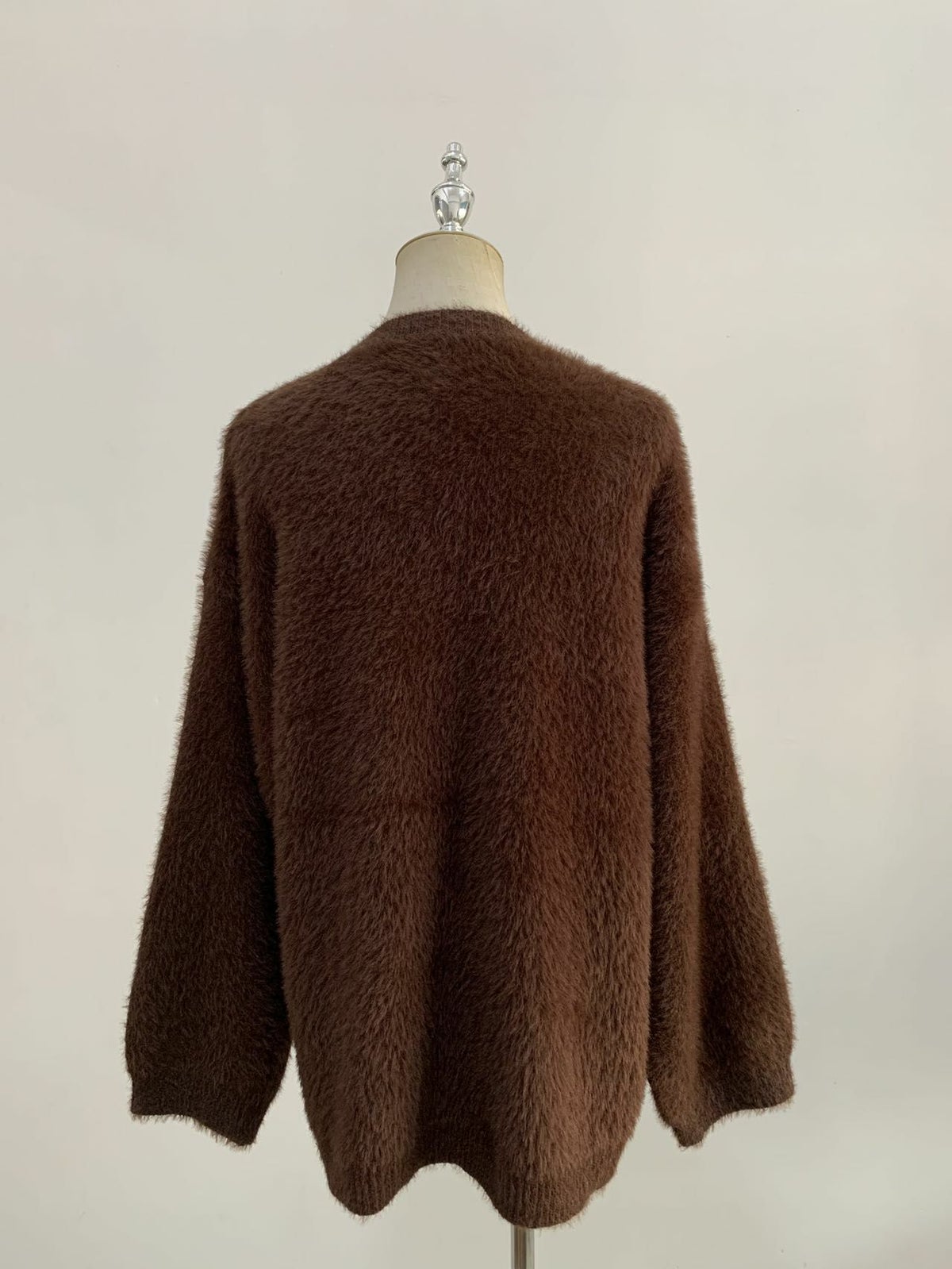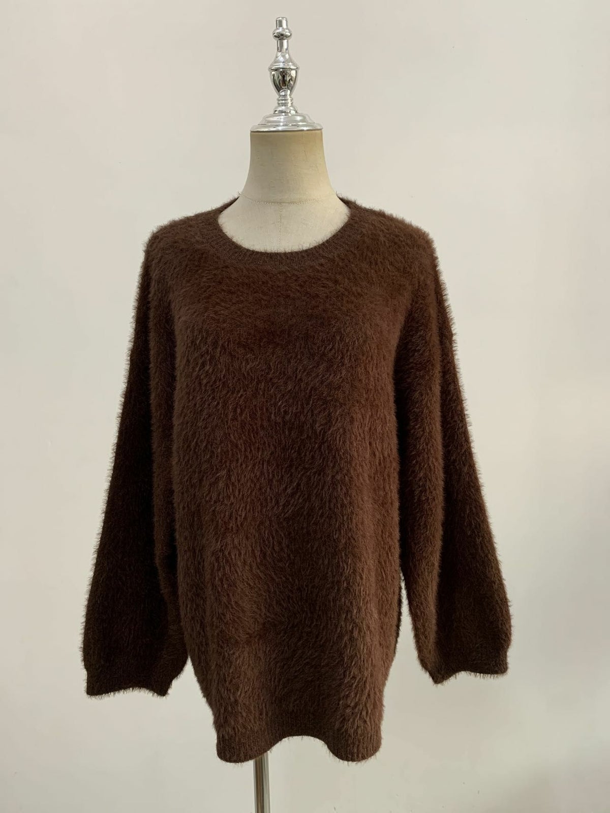 予約 2color フェイク モヘア クルーネック オーバーサイズ ニット