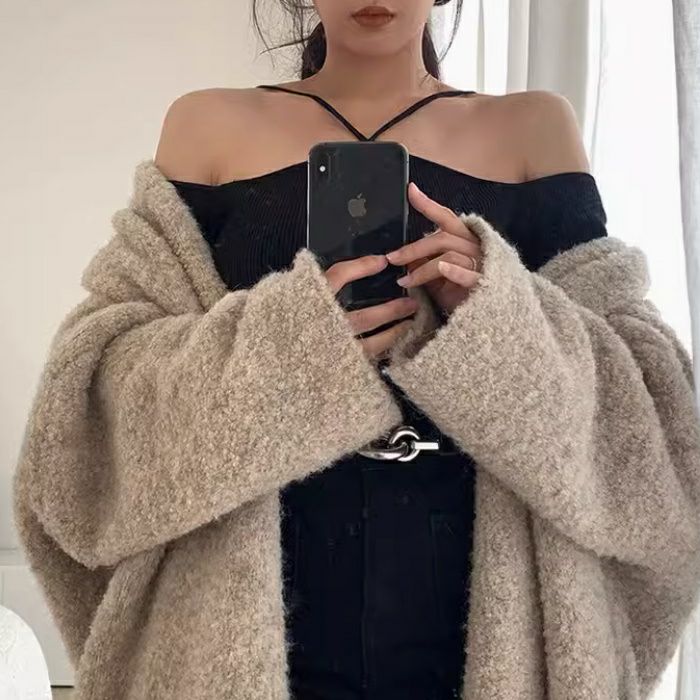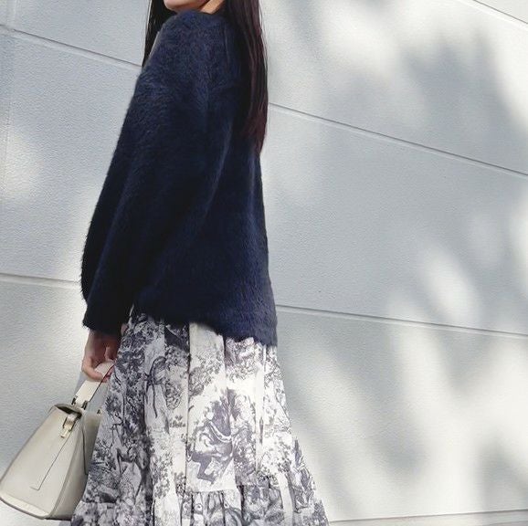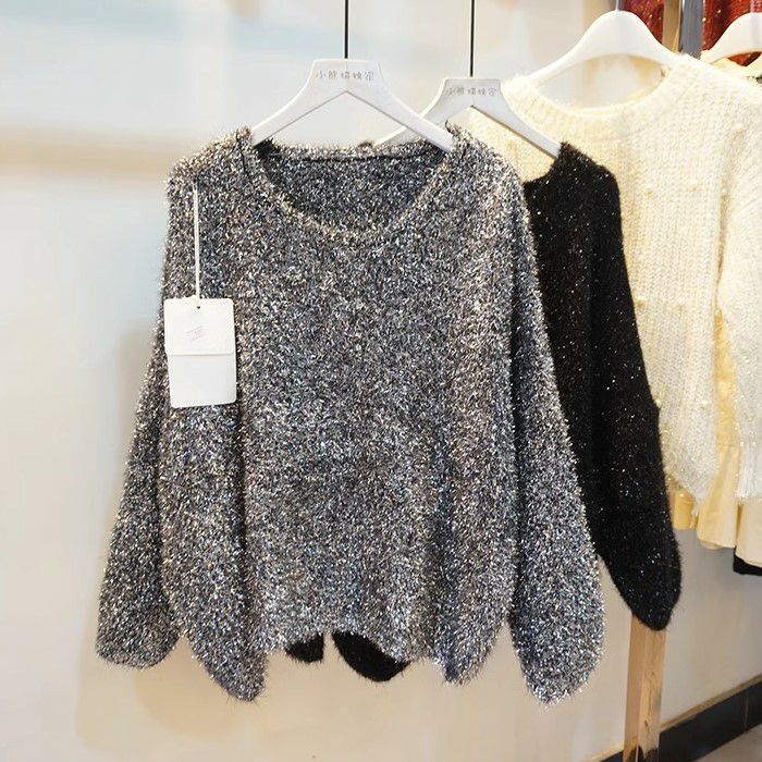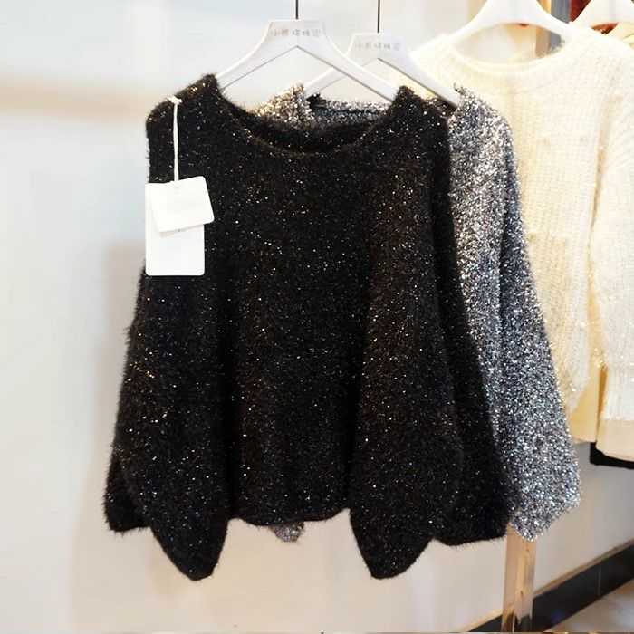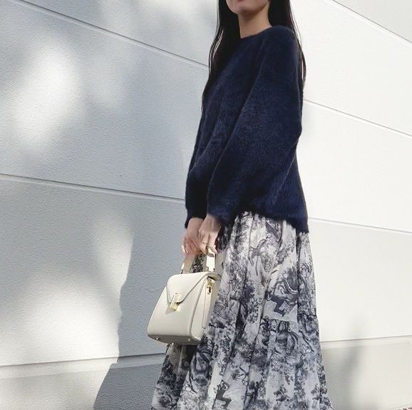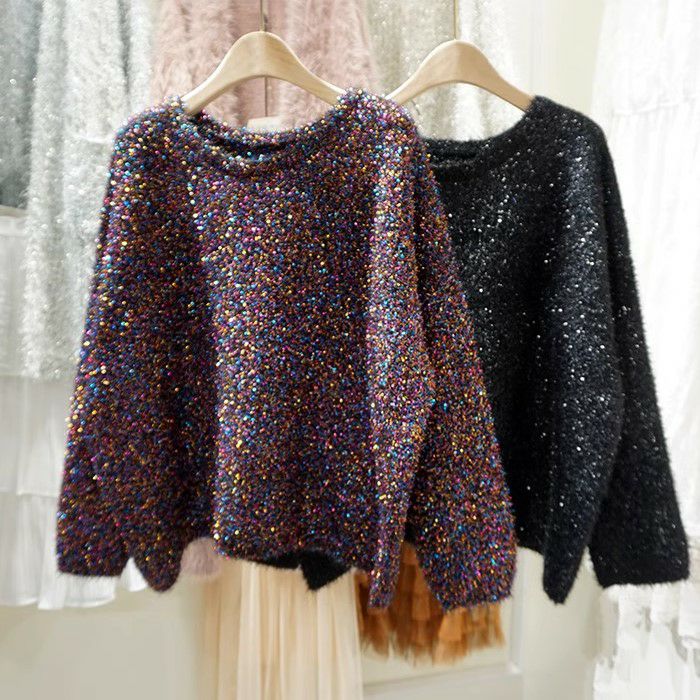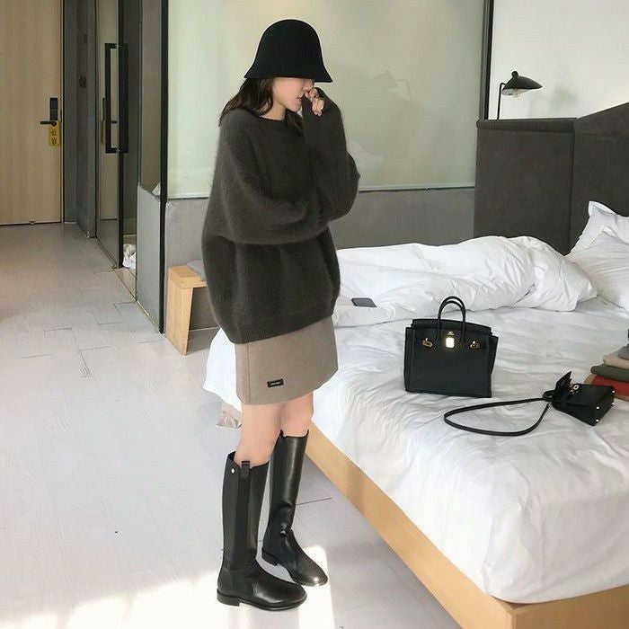 予約 2color フェイク モヘア クルーネック オーバーサイズ ニット