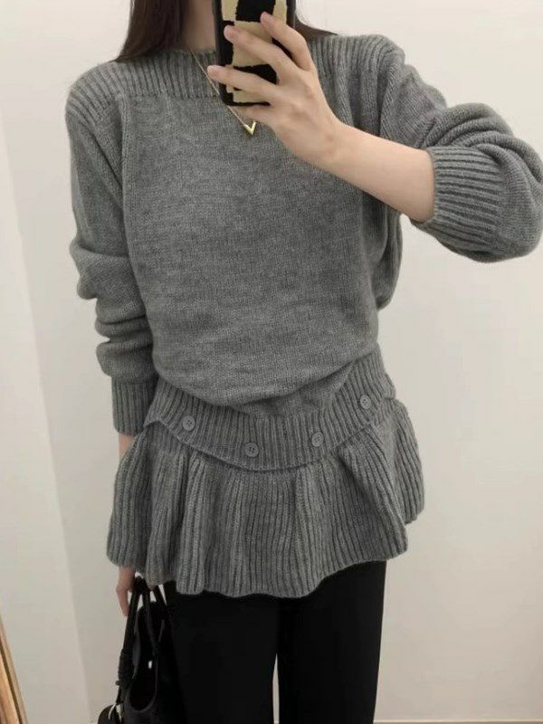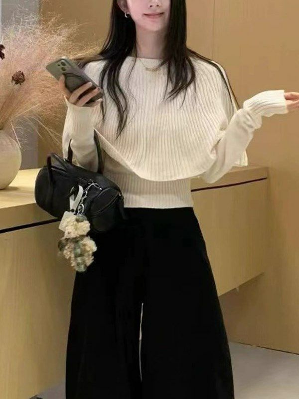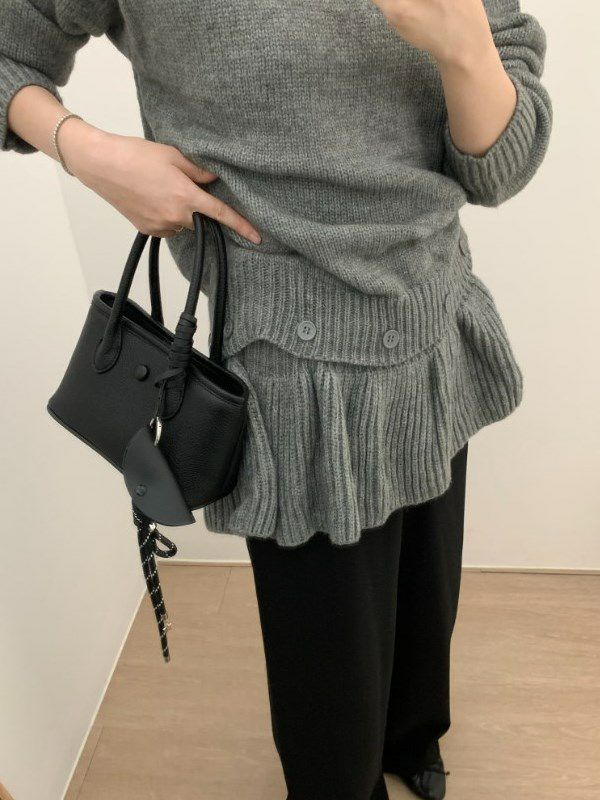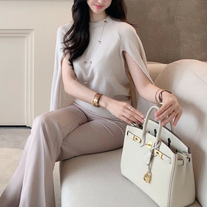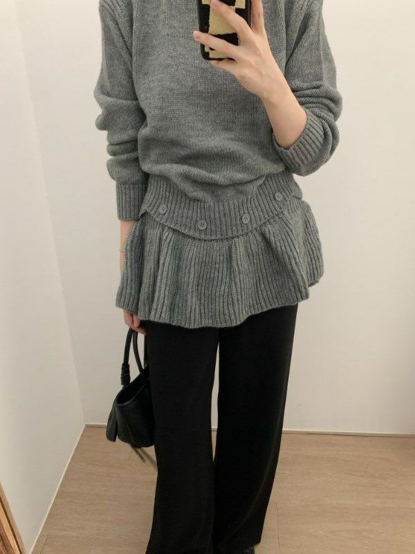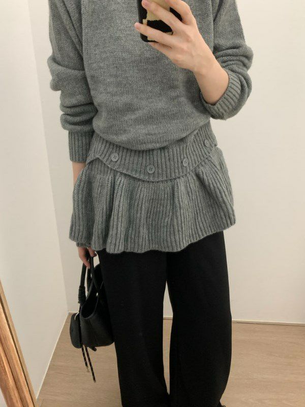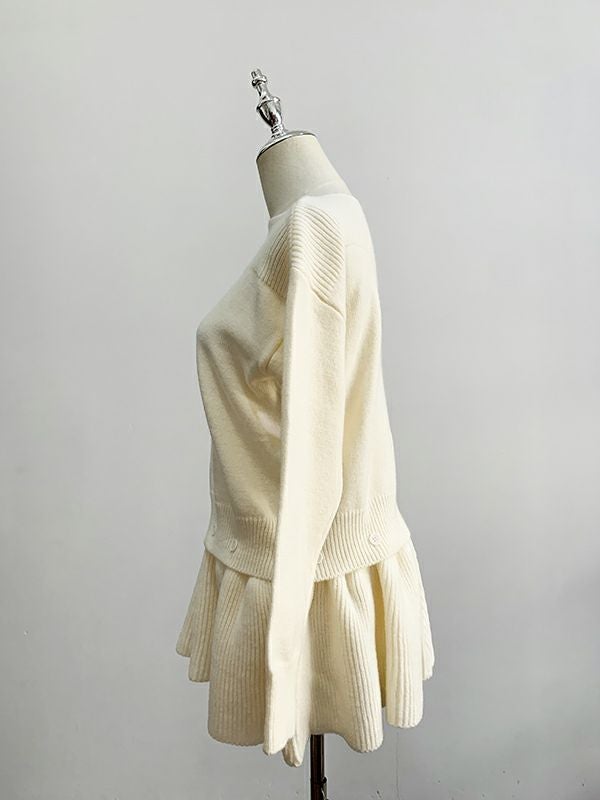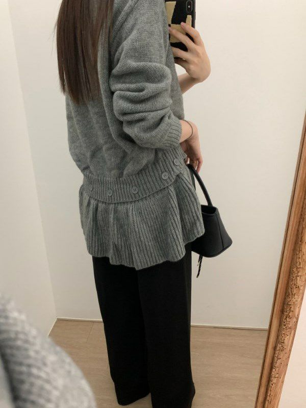 予約 3set ニットセットアップ ペプラム ニット カーディガン ワイドパンツ