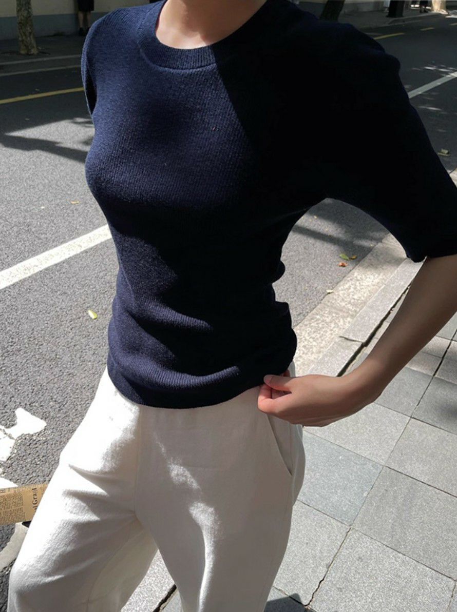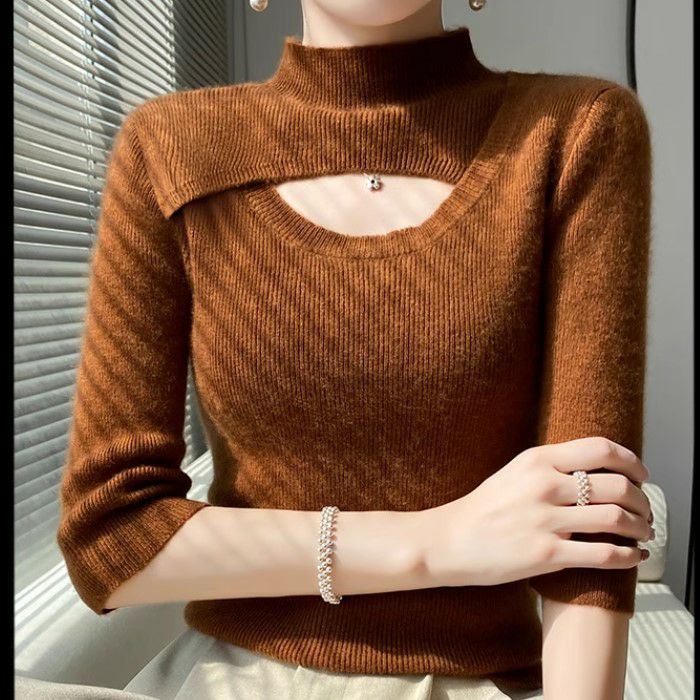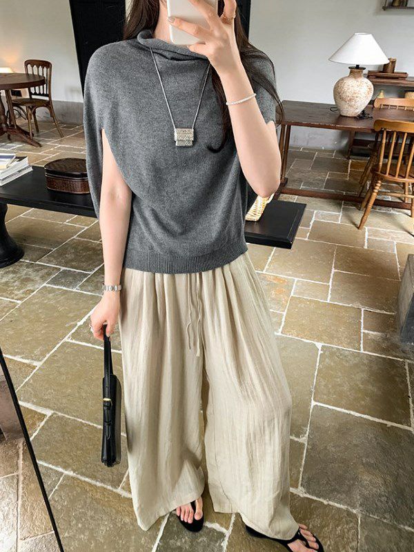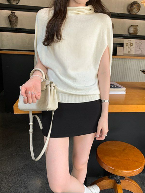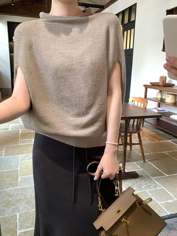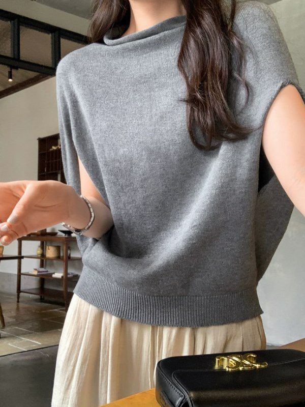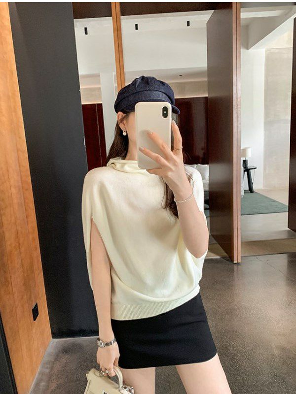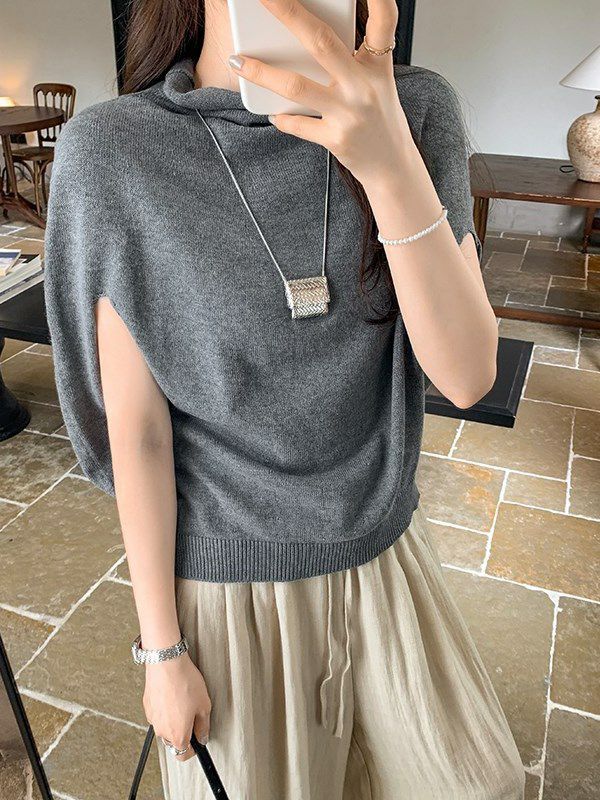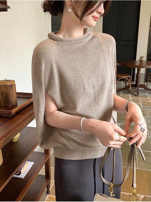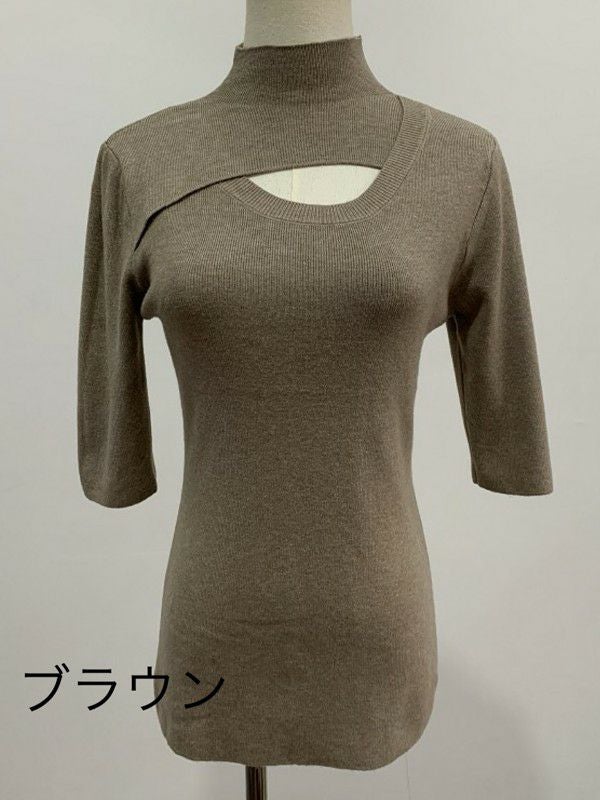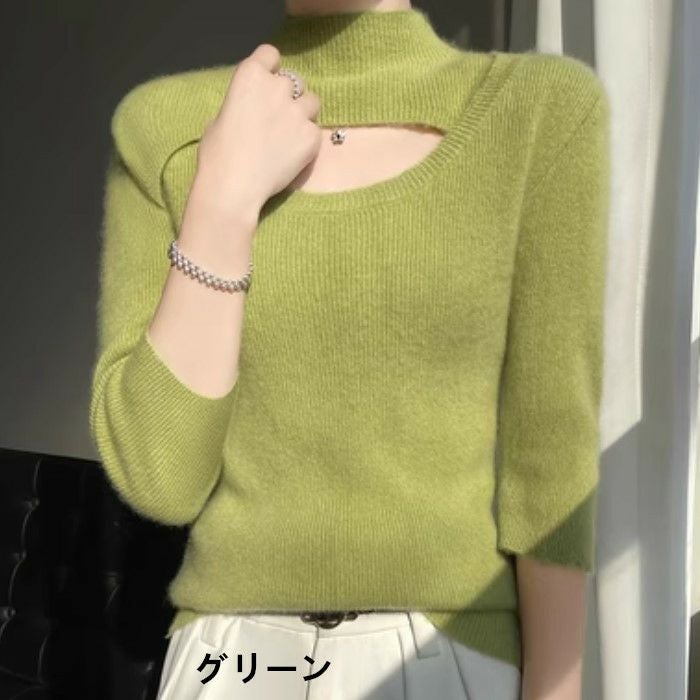 予約 7color ハイネック オープンニット ハーフスリーブ