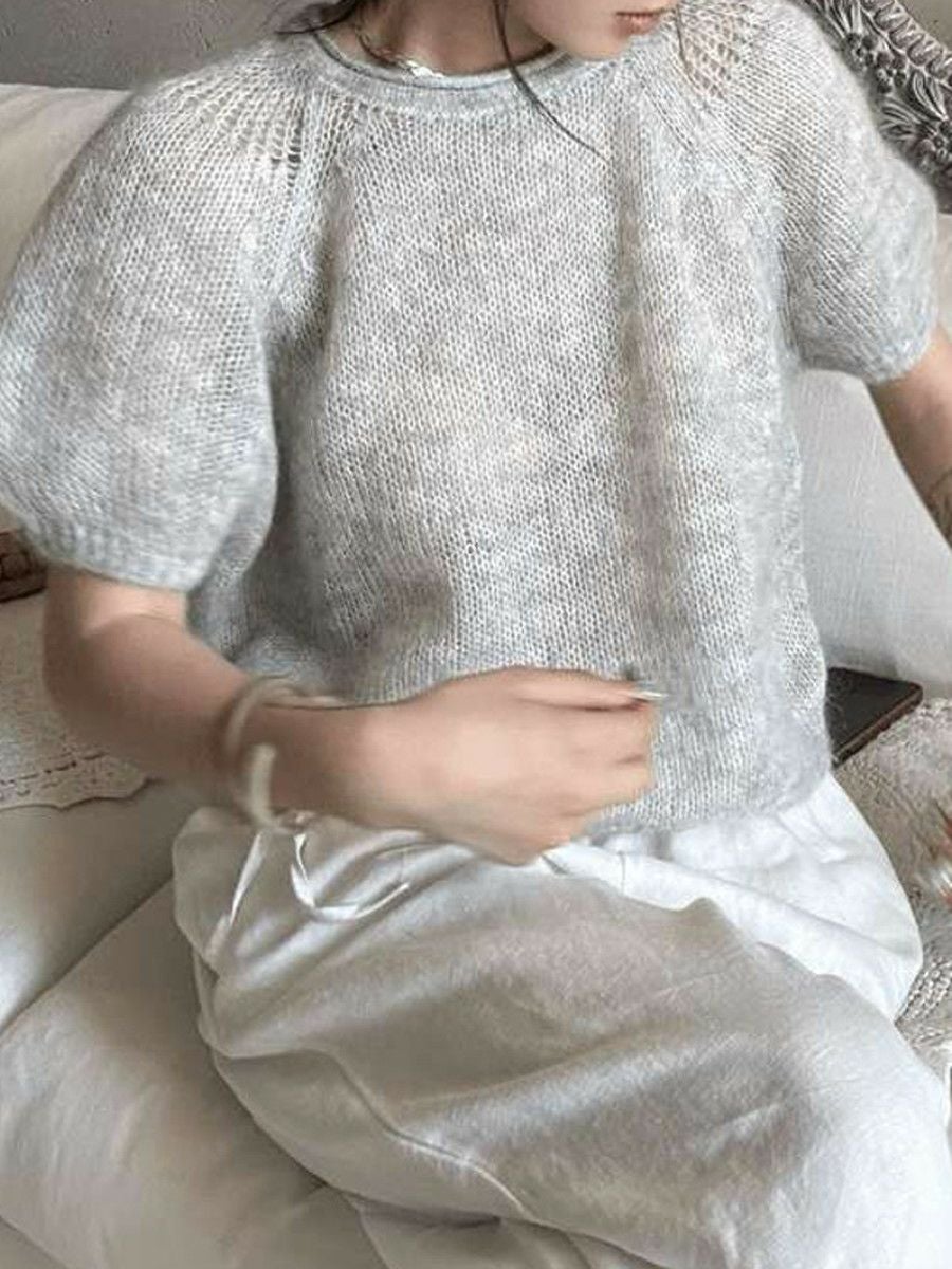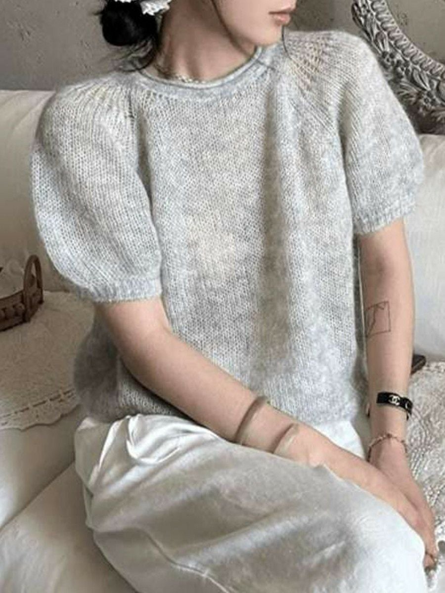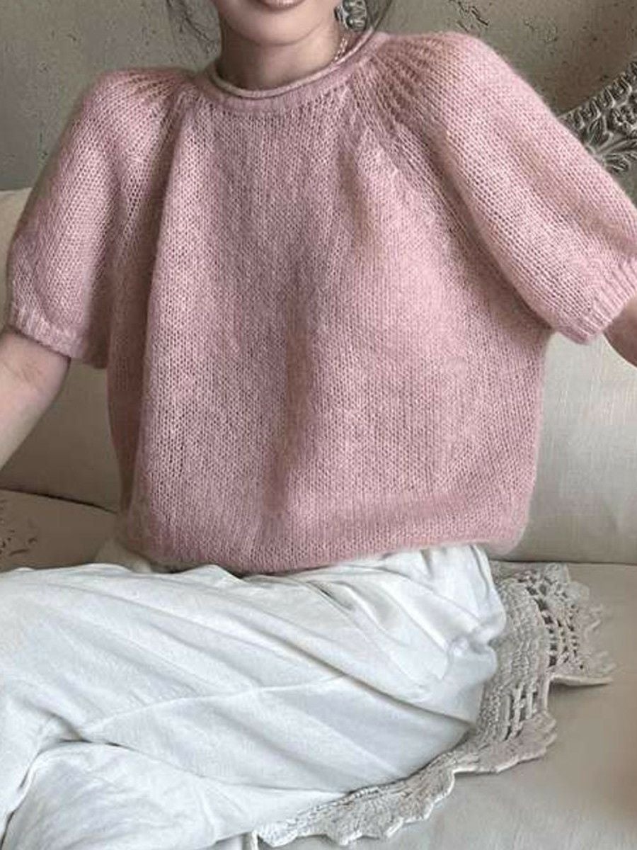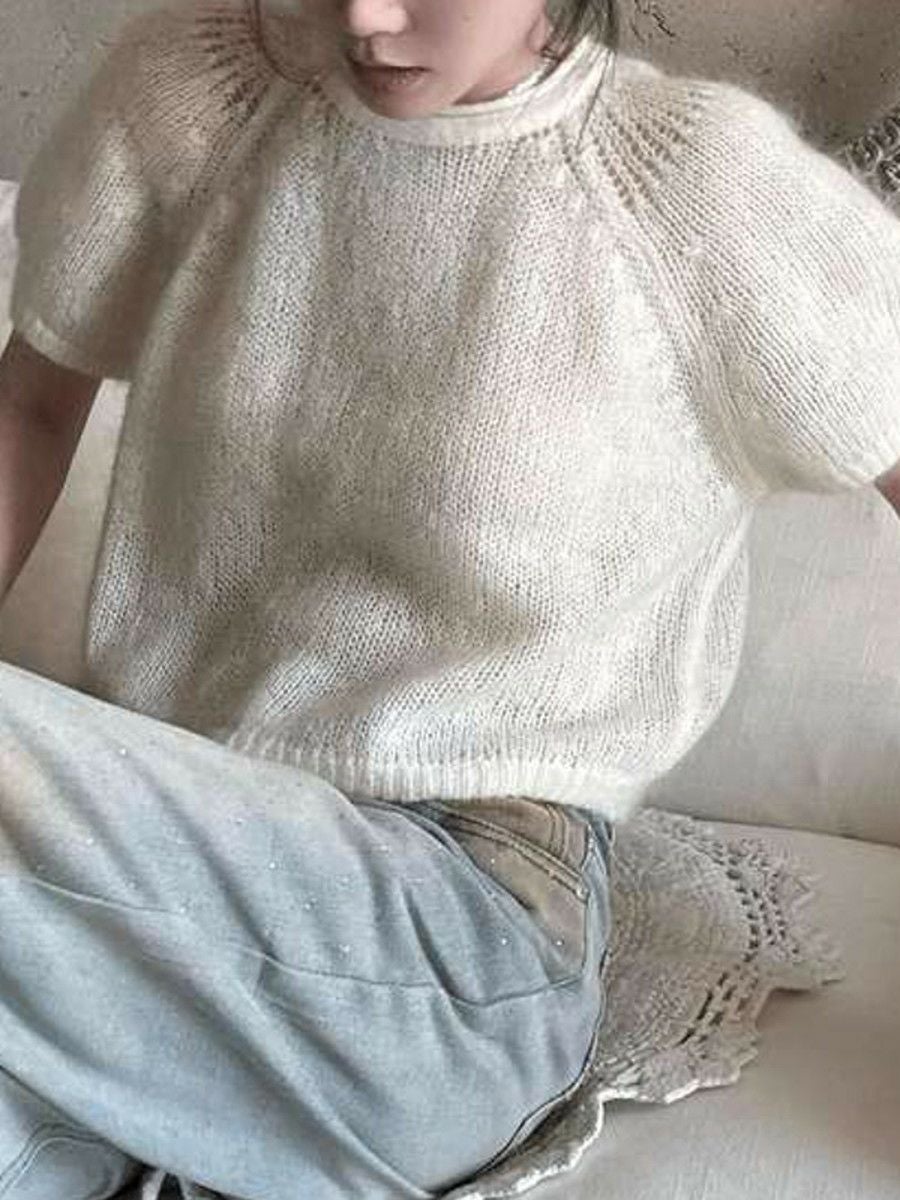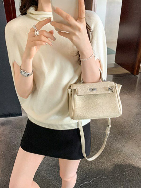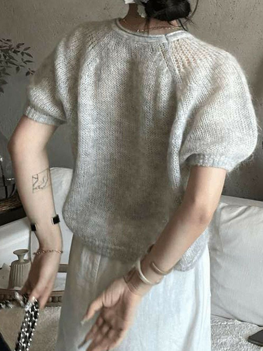 予約 7color ハイネック オープンニット ハーフスリーブ